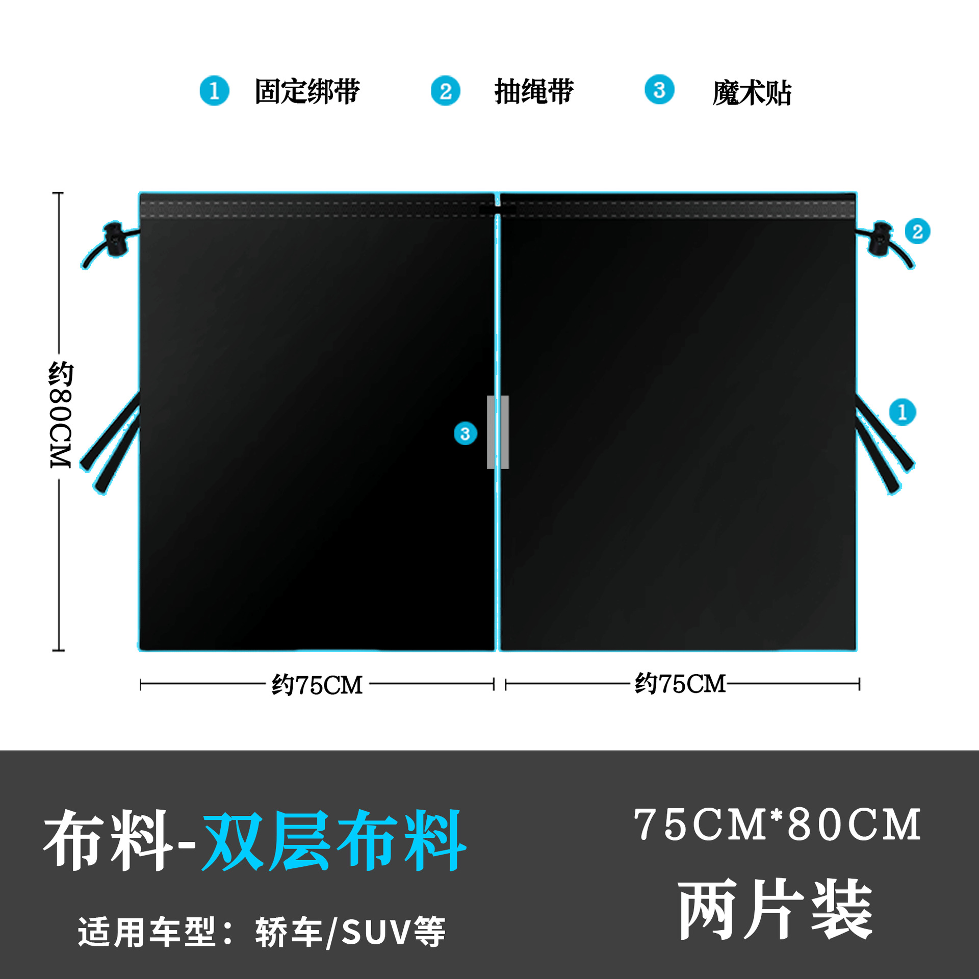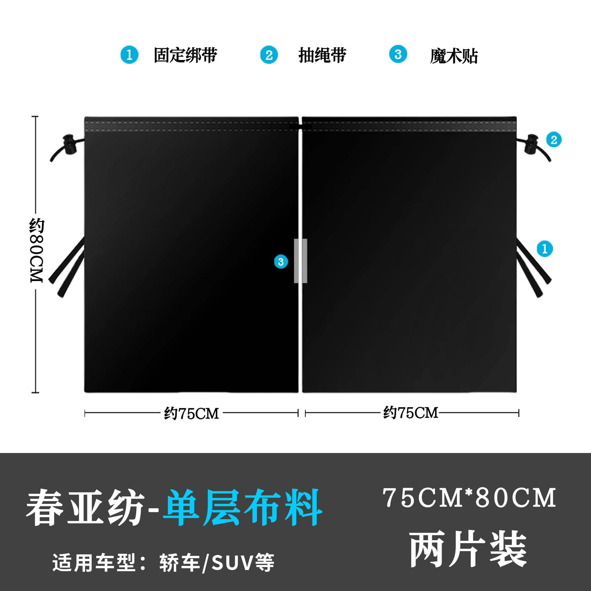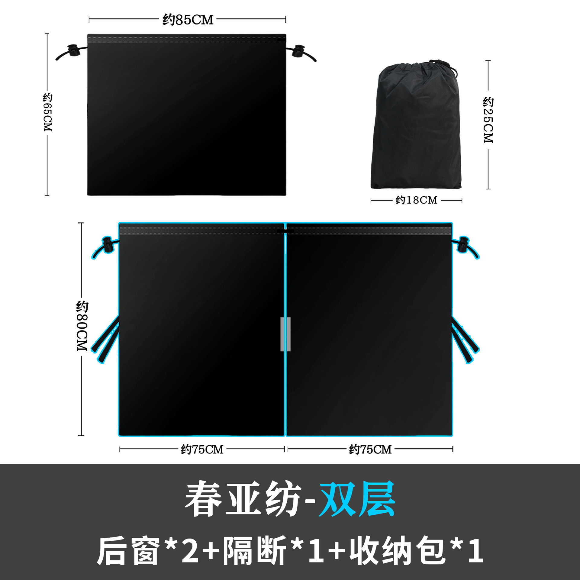 [春亚纺双层套装(隔断帘*1+后窗*2) ] 束口袋包装 包装尺寸20*18*9cm