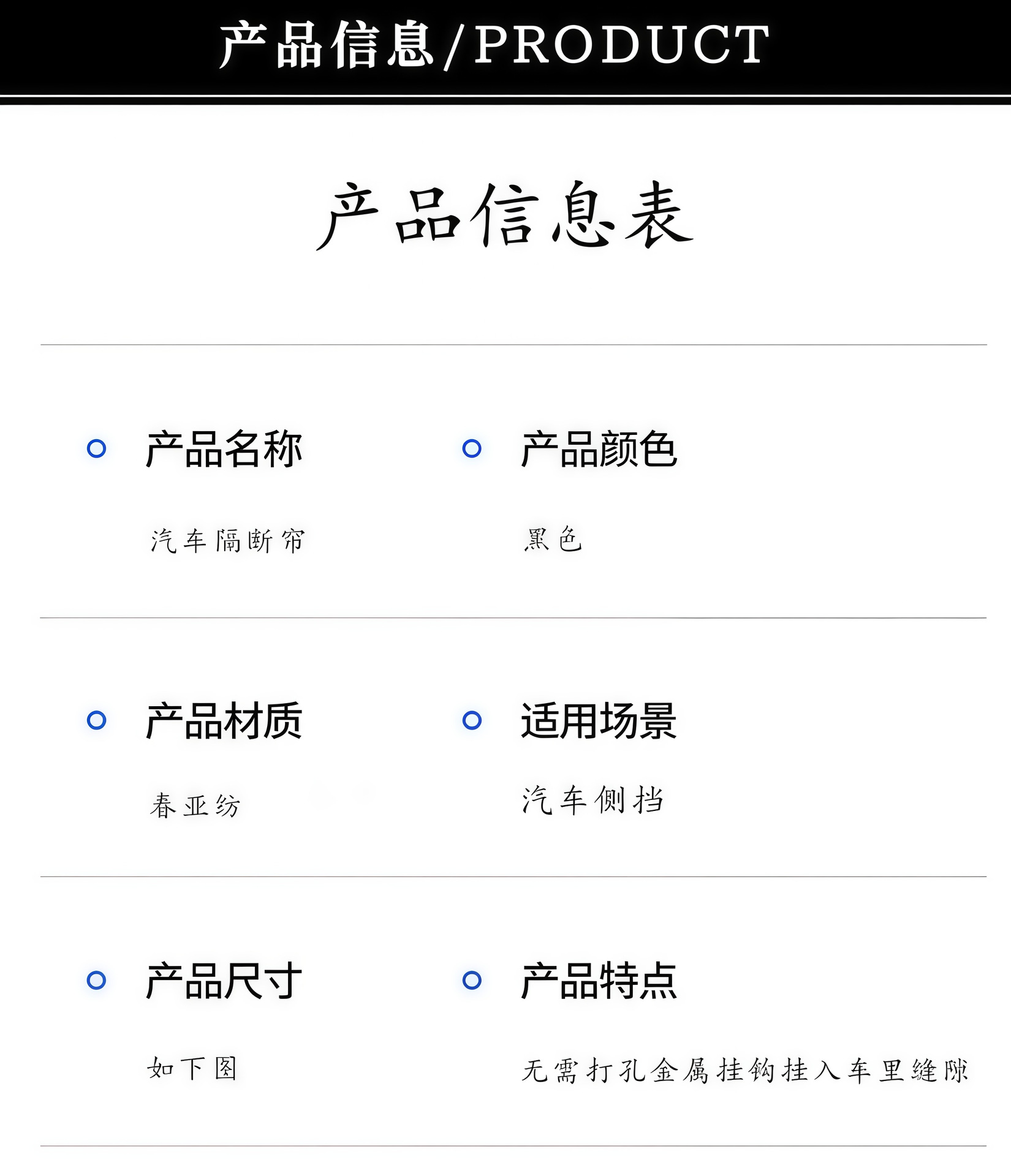 【产品名称】:汽车隔断帘