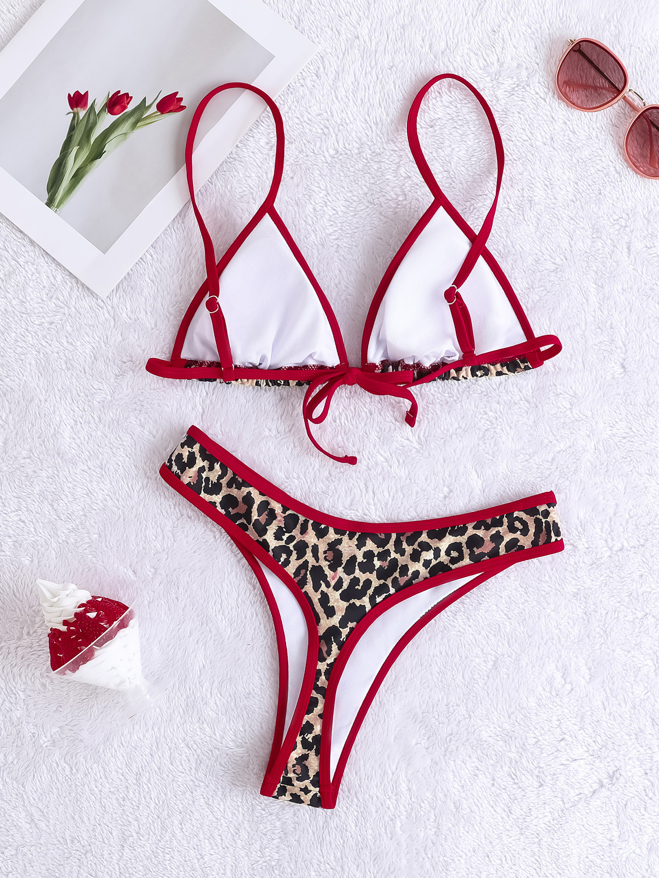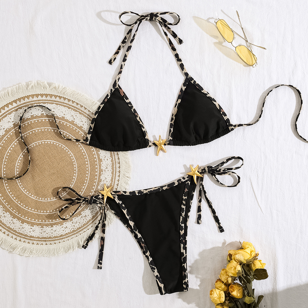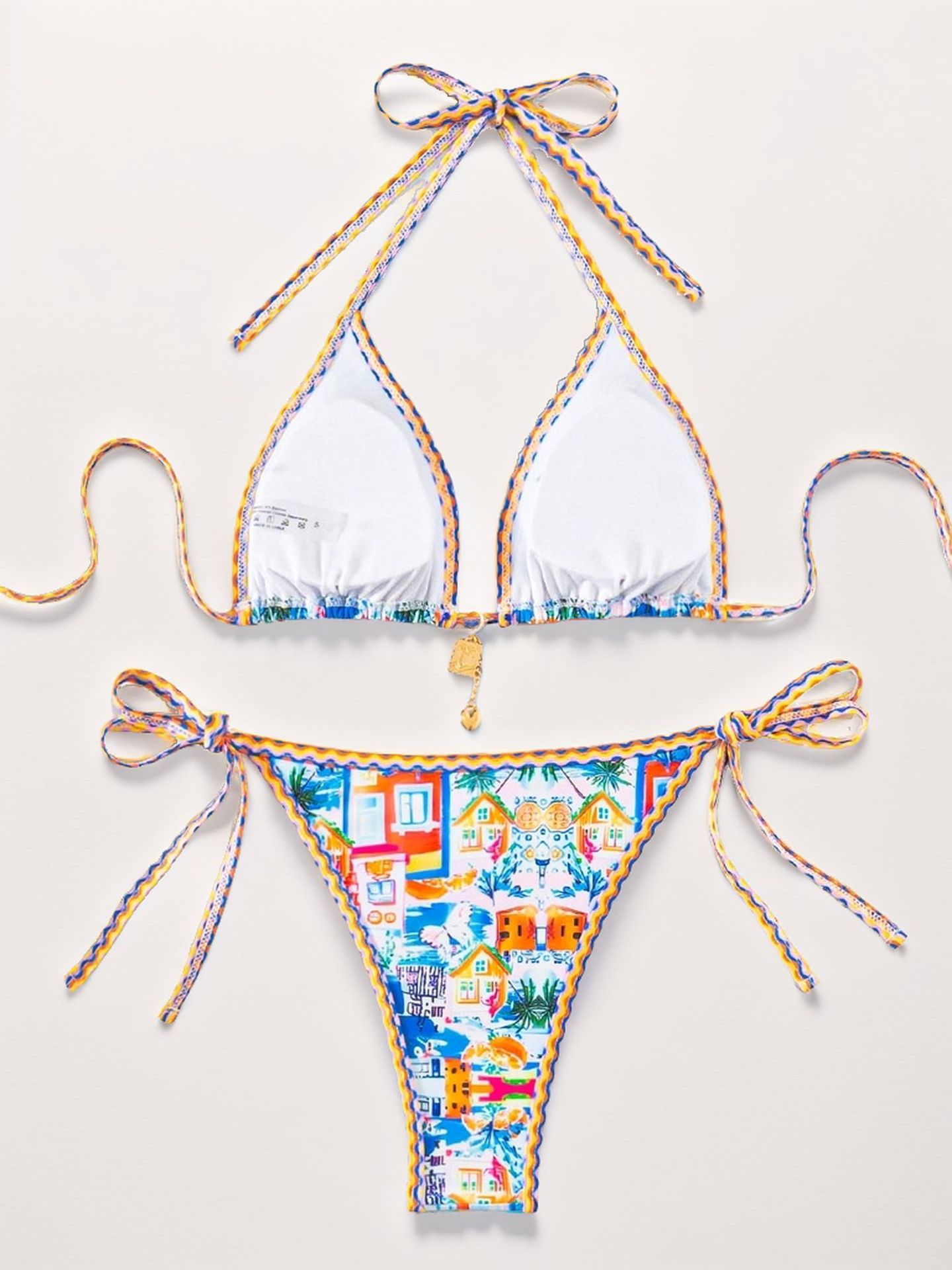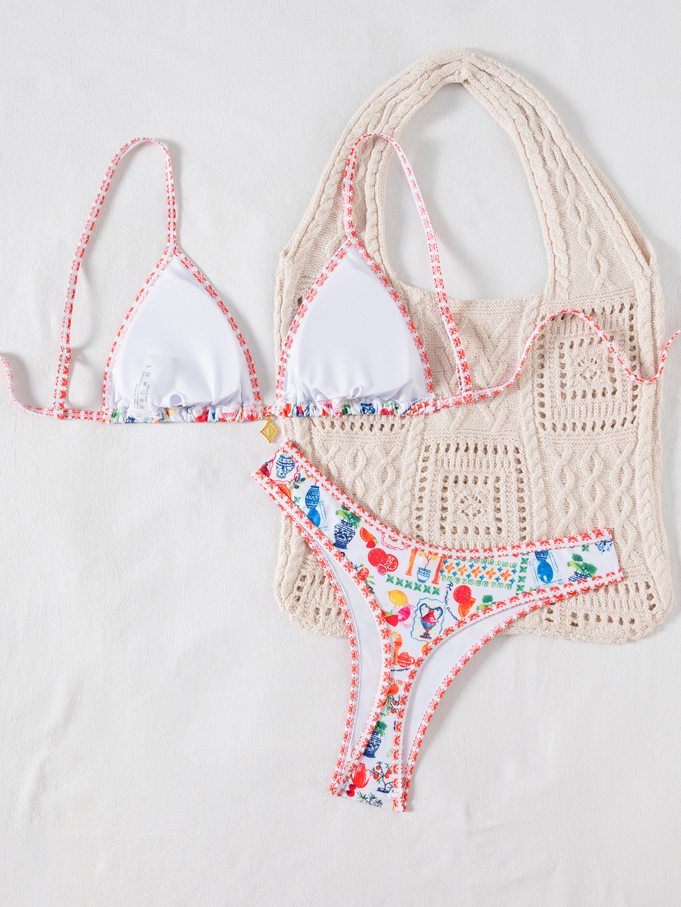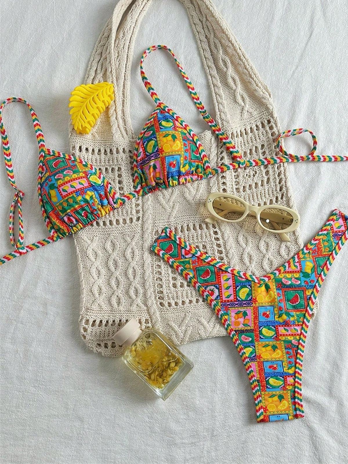 여성용 수영복 2025 새로운 국경 간 유럽과 미국의 인기 있는 컬러 대비 프린트 레이스 업 섹시한 비키니 스플릿 수영복스토어 가기