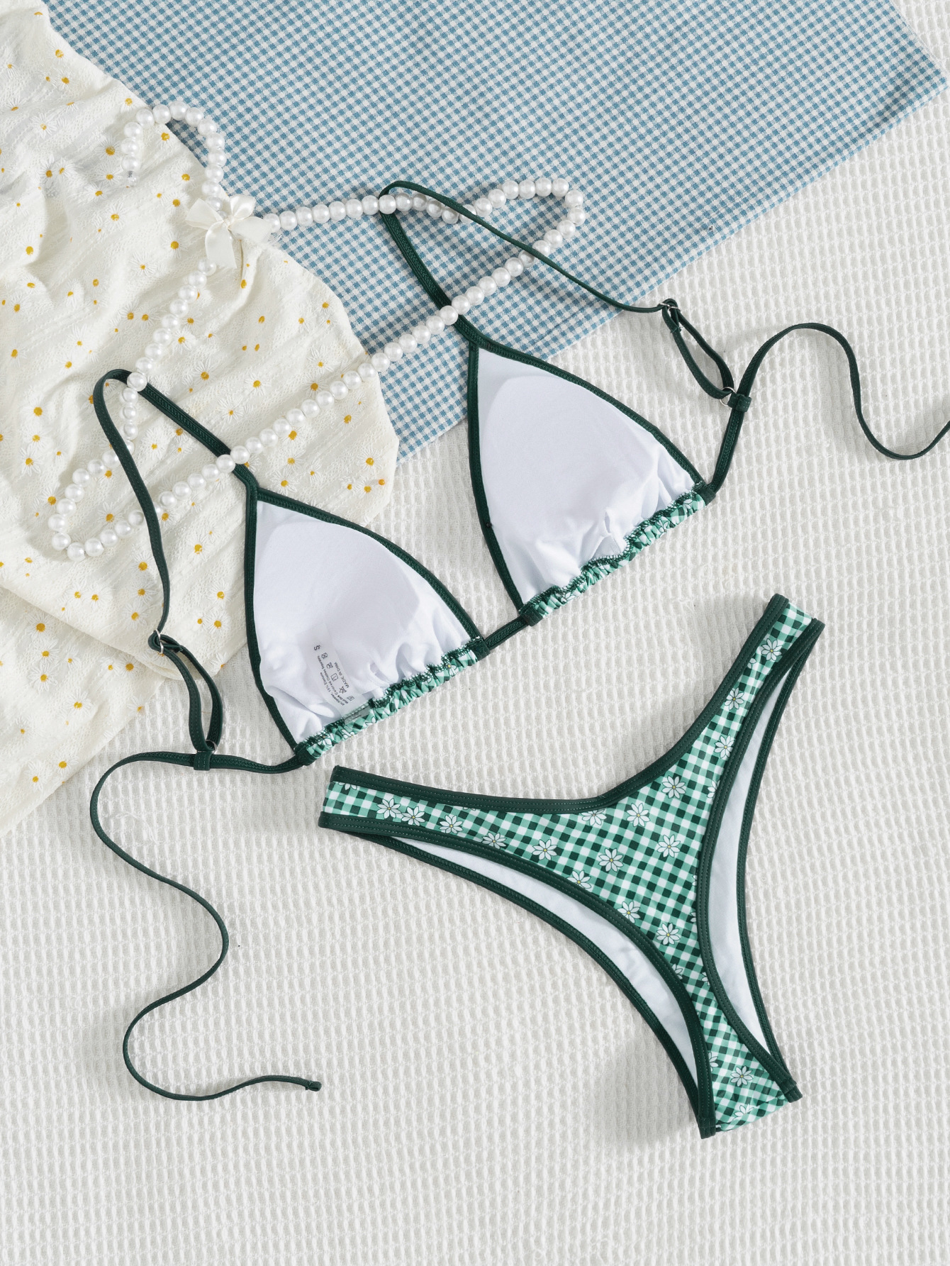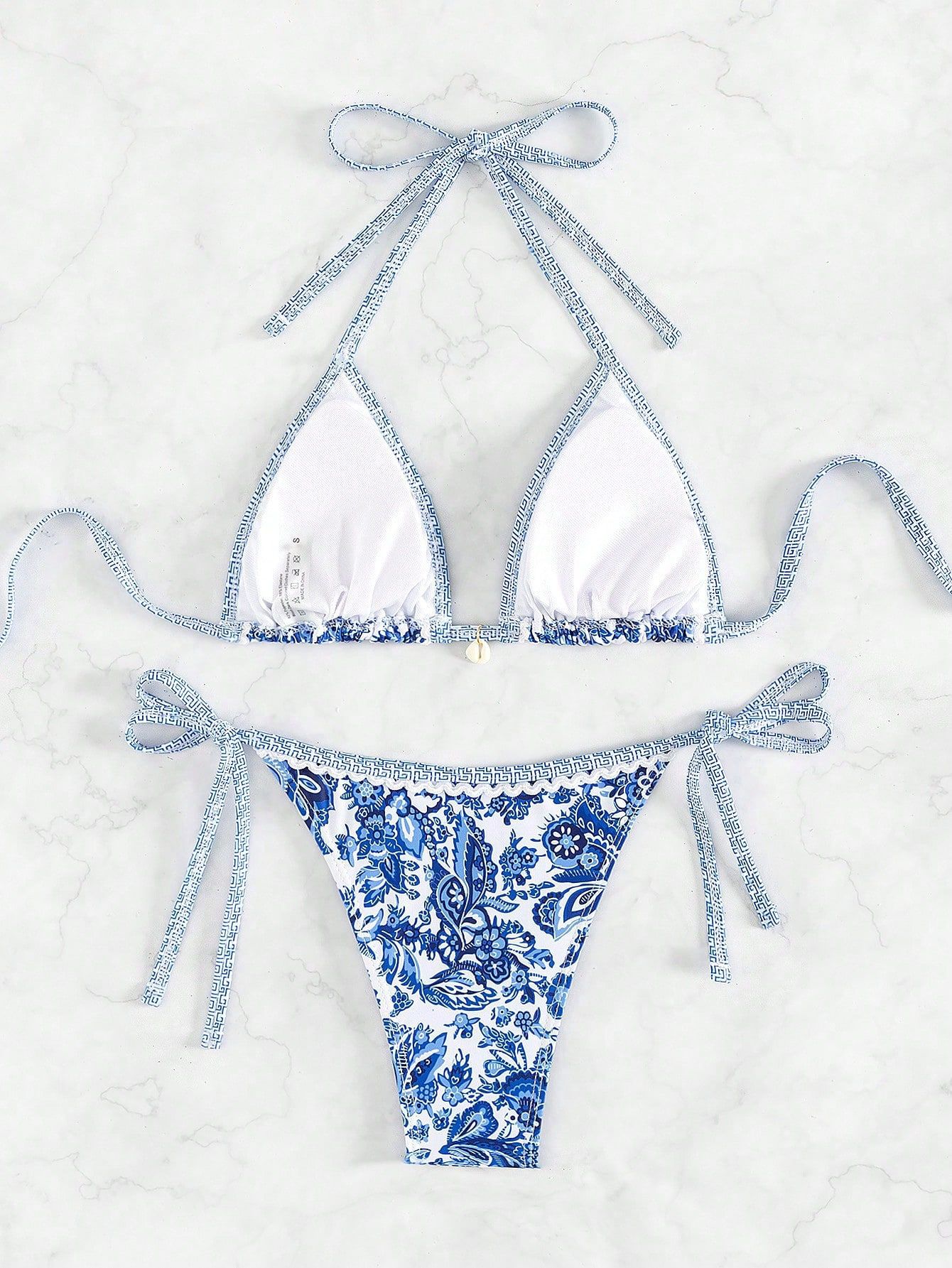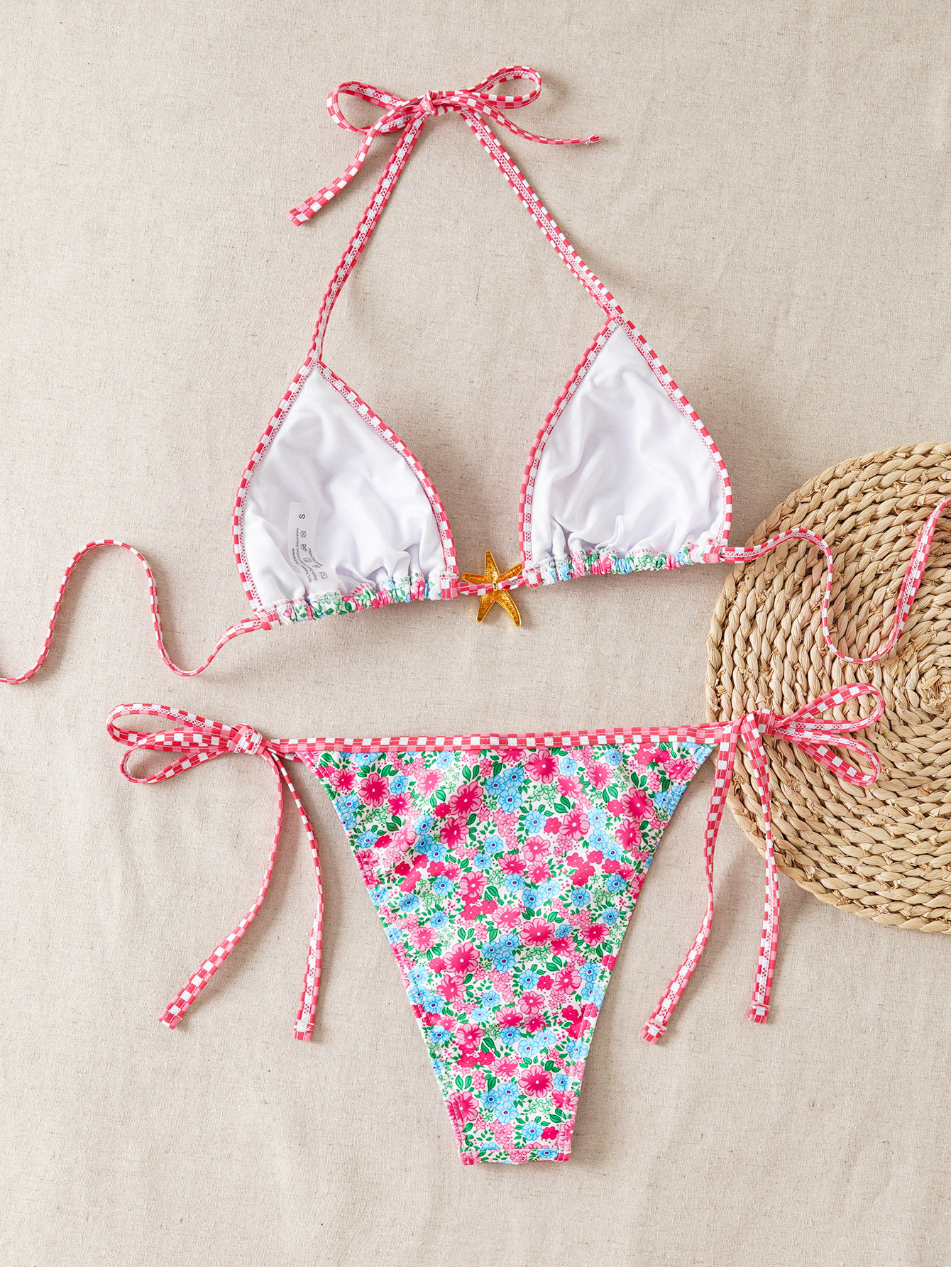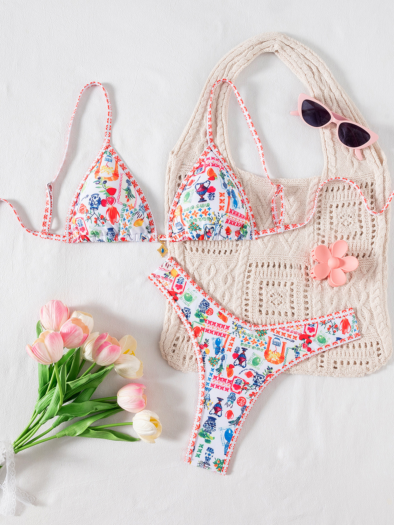여성용 수영복 2025 새로운 국경 간 유럽과 미국의 인기 있는 컬러 대비 프린트 레이스 업 섹시한 비키니 스플릿 수영복스토어 가기