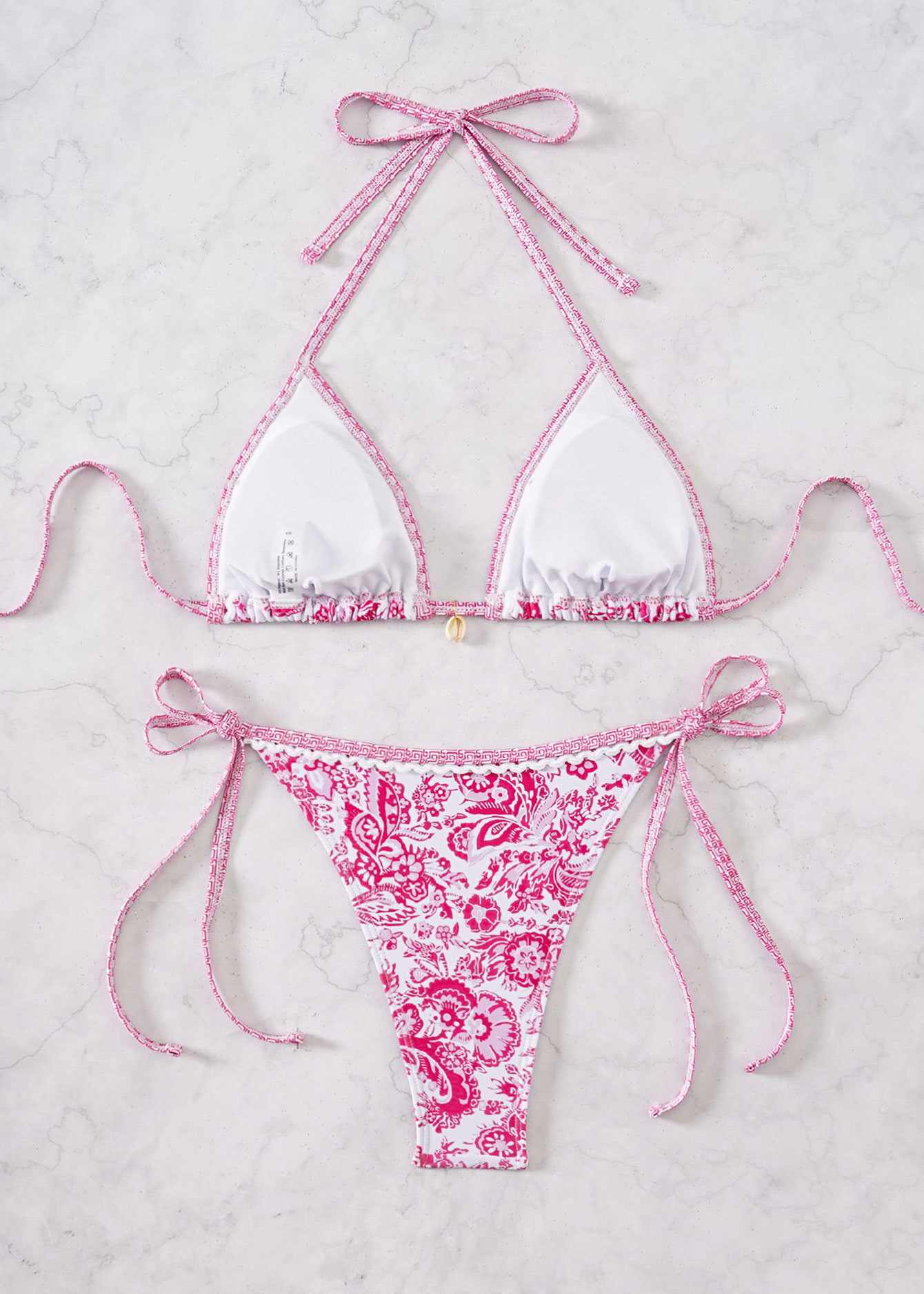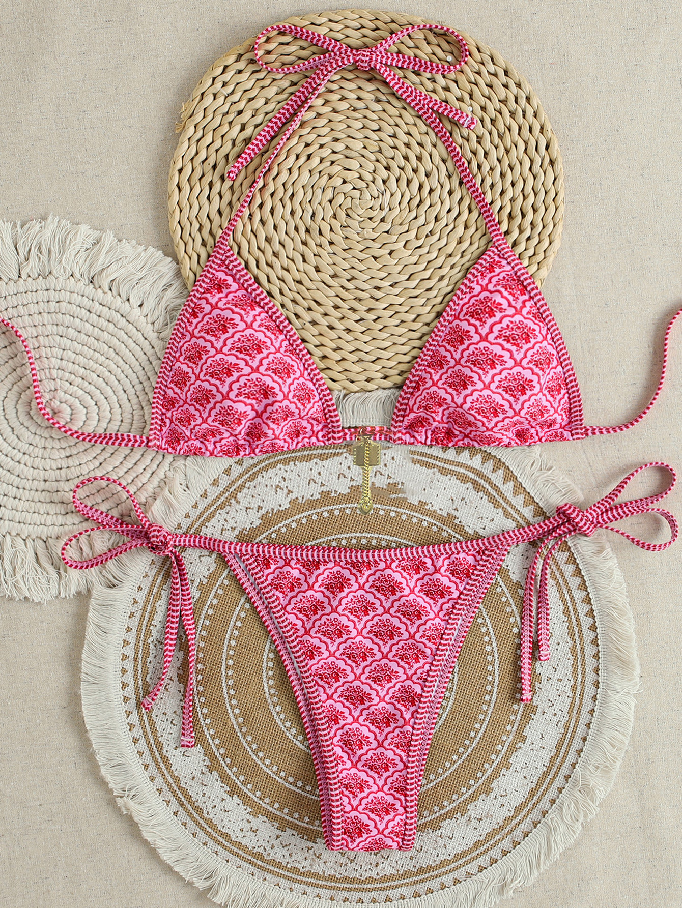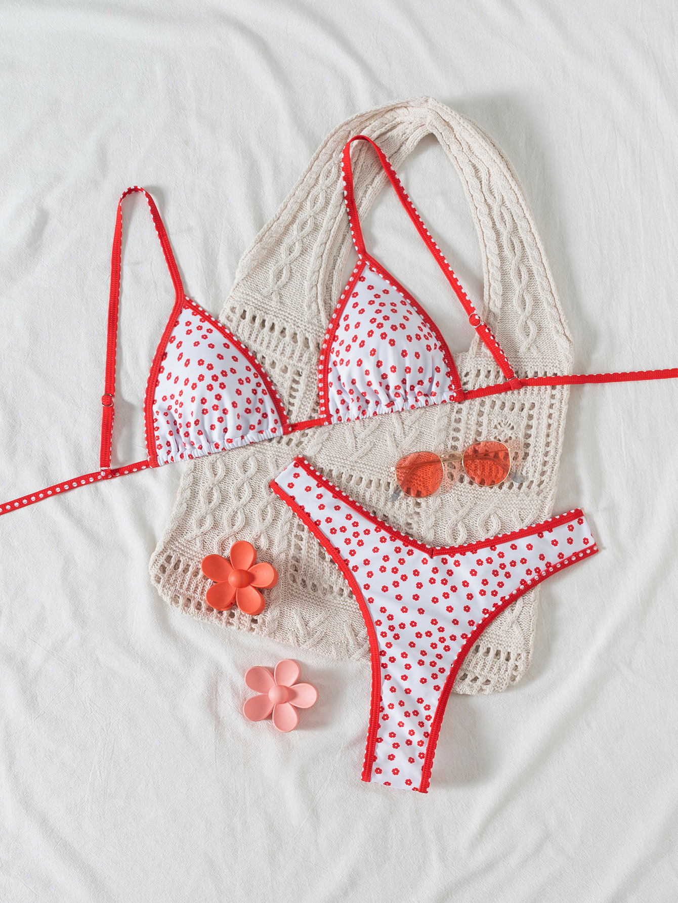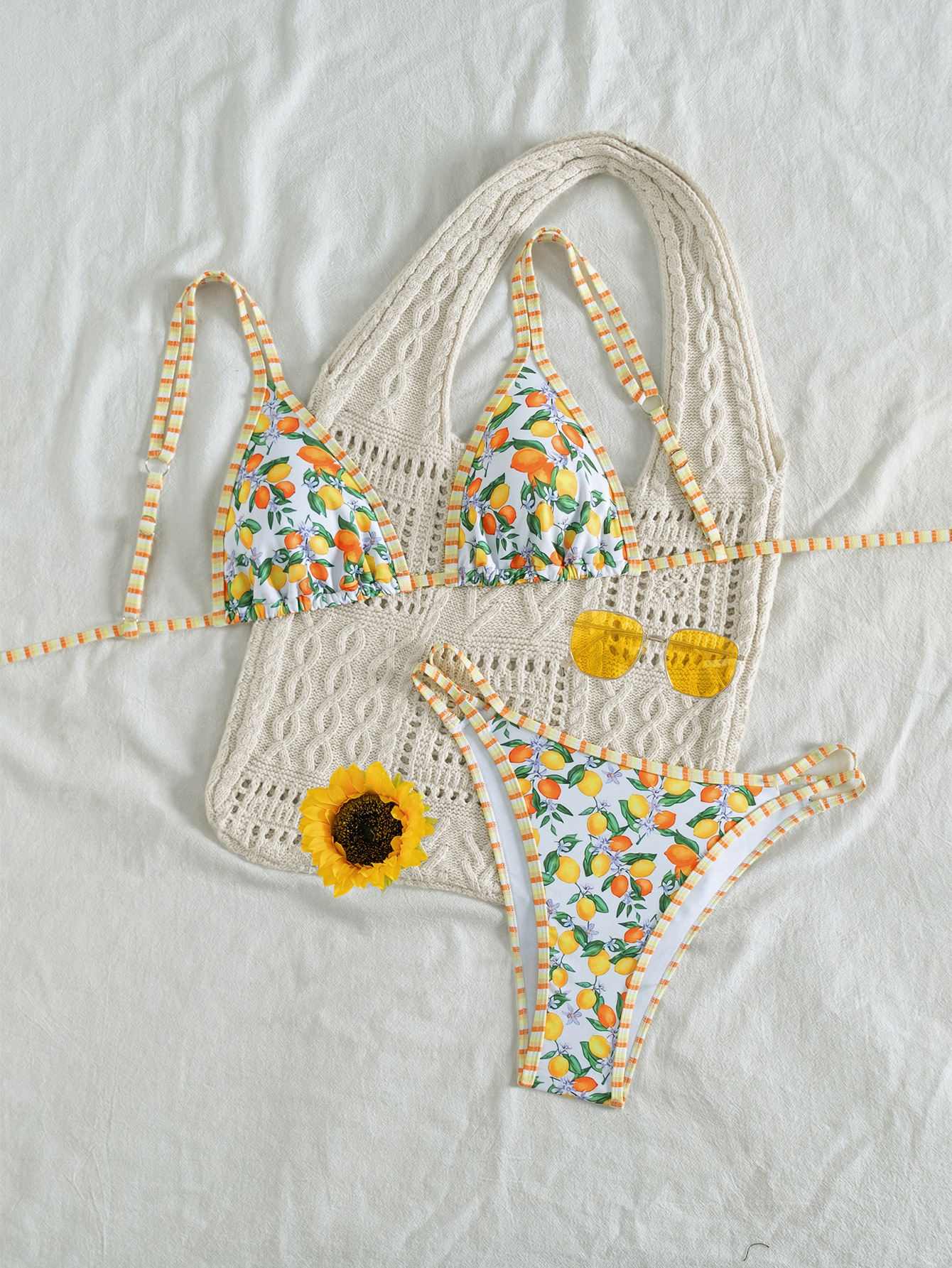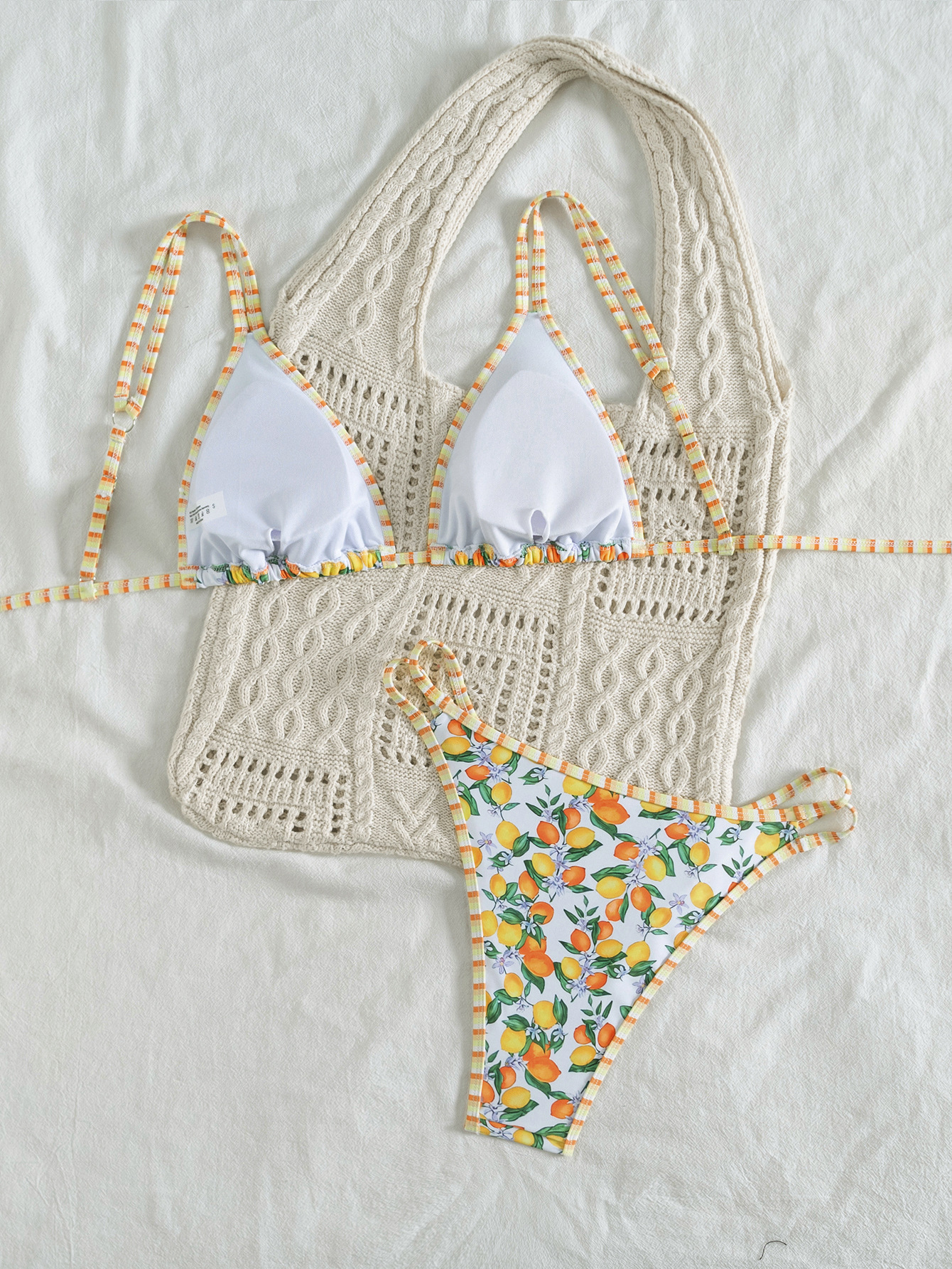 여성용 수영복 2025 새로운 국경 간 유럽과 미국의 인기 있는 컬러 대비 프린트 레이스 업 섹시한 비키니 스플릿 수영복스토어 가기