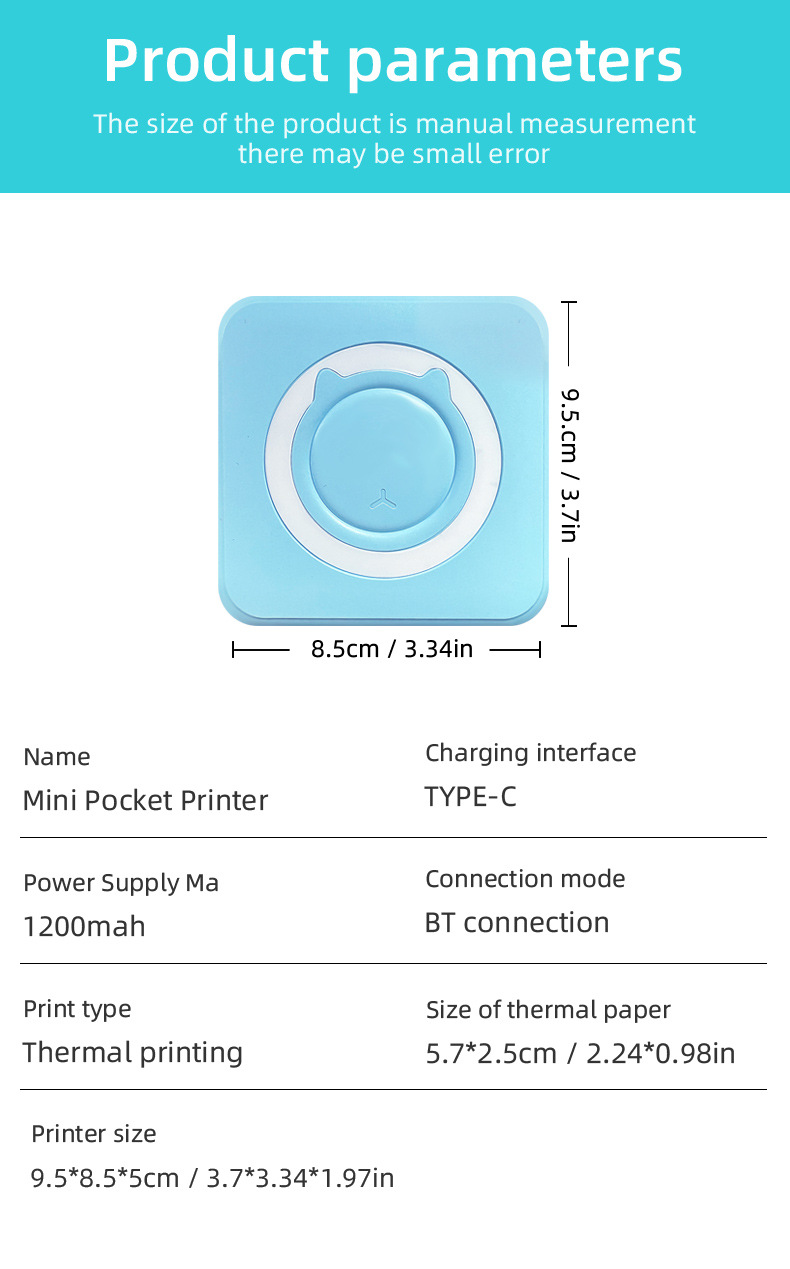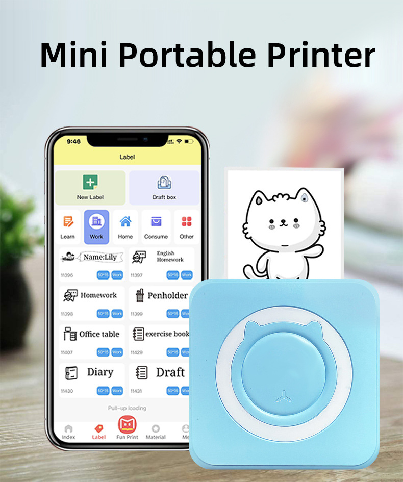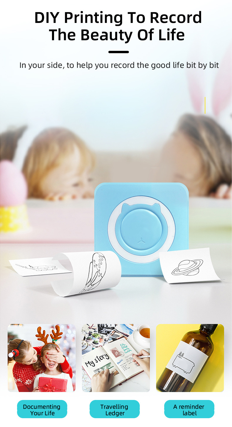 국경 간 뜨거운 판매 미니 프린터 무선 연결 휴대 전화 블루투스 열 잉크-무료 작은 가정용 라벨 프린터