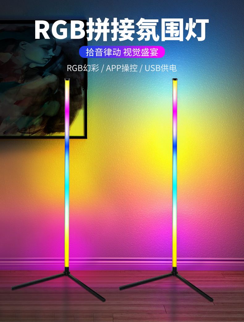 새로운 rgb 블루투스 원격 제어 플로어 램프 실내 거실 전자 스포츠 룸 코너 바닥 서 인터넷 레드 픽업 분위기 램프