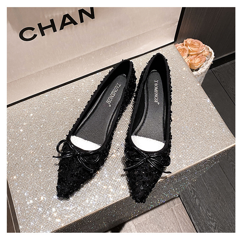 B6 Huidong Yixinda 2025 봄 반짝이는 스팽글 절묘한 작은 뾰족한 발가락 부드러운 바닥 데이트 보우 신발 여성용