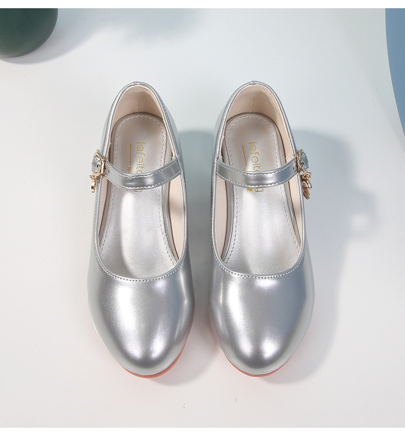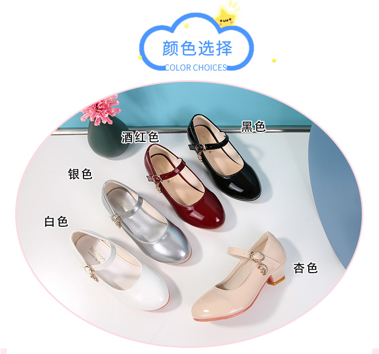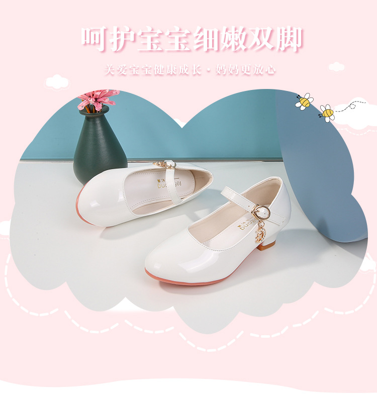 여아 하이힐 2025 신상 화이트 공주 가죽 신발 공연용 학생 신발 25-40 사이즈 어린이 댄스 신발 5
