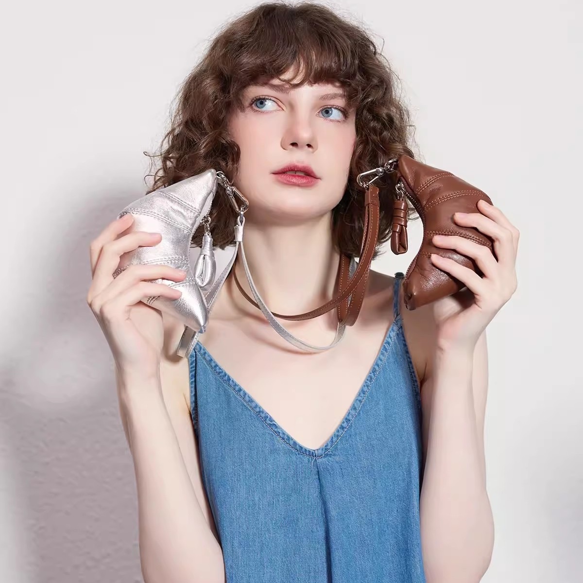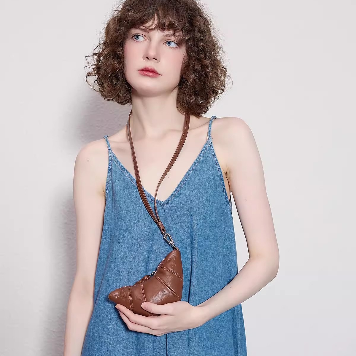 2025 도매 틈새 디자인 질감 부드러운 가죽 미니 크로와상 크로와상 복고풍 절묘한 휴대용 끈 동전 지갑