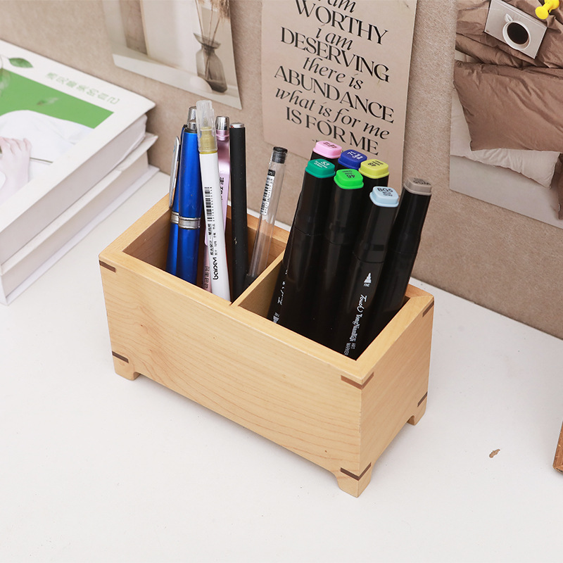 단단한 나무 모리 데스크탑 원격 제어 저장 상자 사무실 책상 펜 홀더 나무 격자 무늬 펜 홀더 문구 고정 상자스토어 가기
