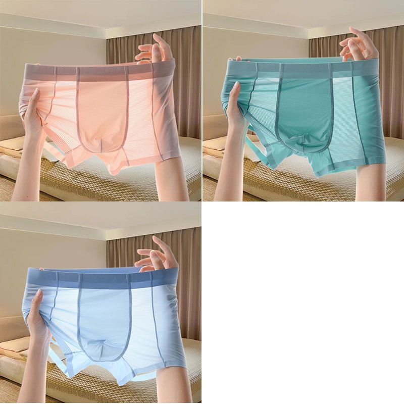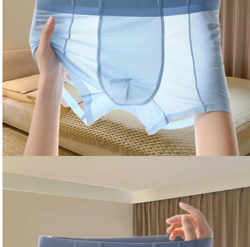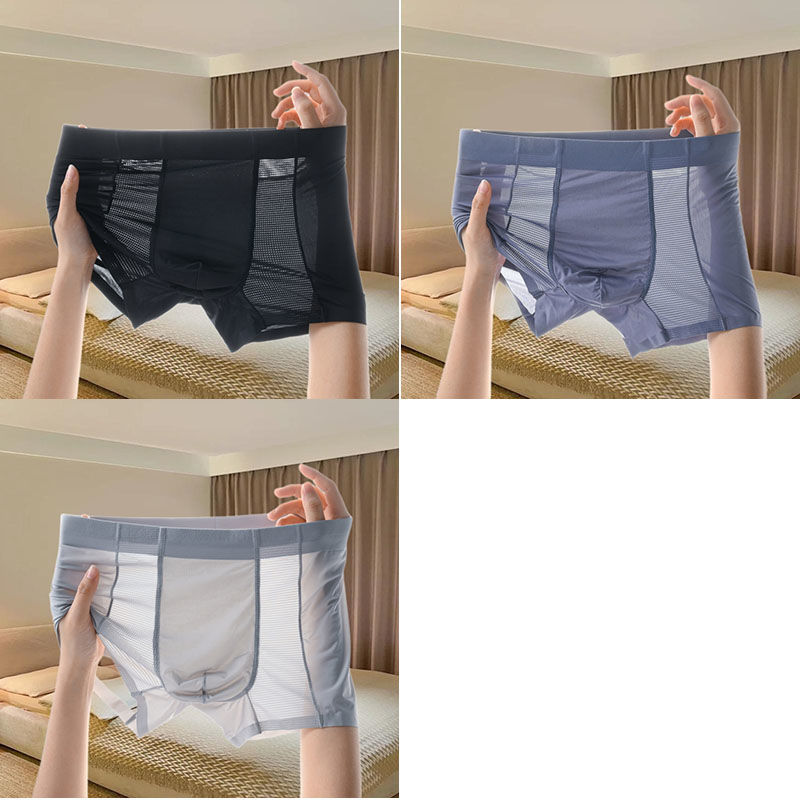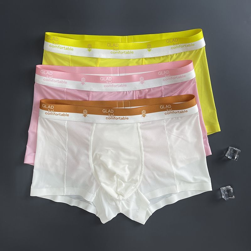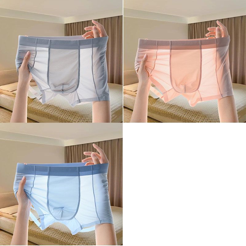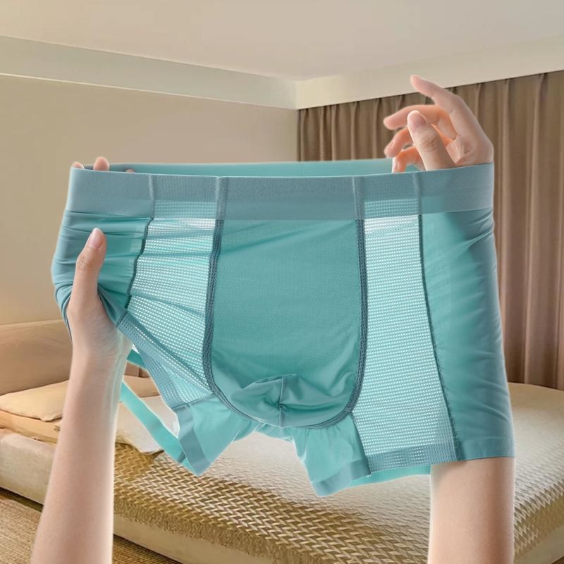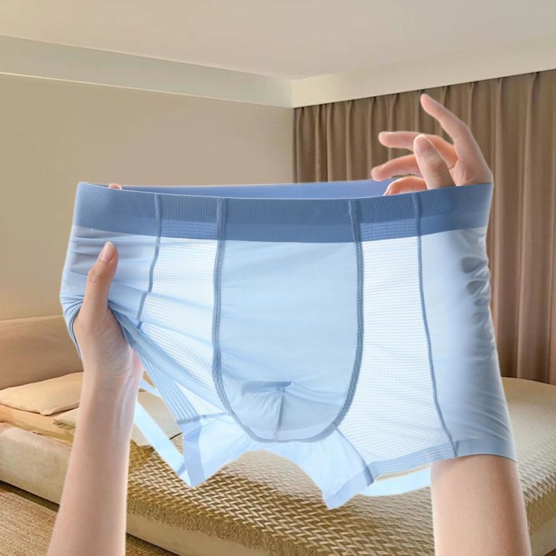 레이스 남성 속옷 아이스 실크 원활한 투명 복서 바지 2023 새로운 남성 섹시한 복서 여름 바지스토어 가기