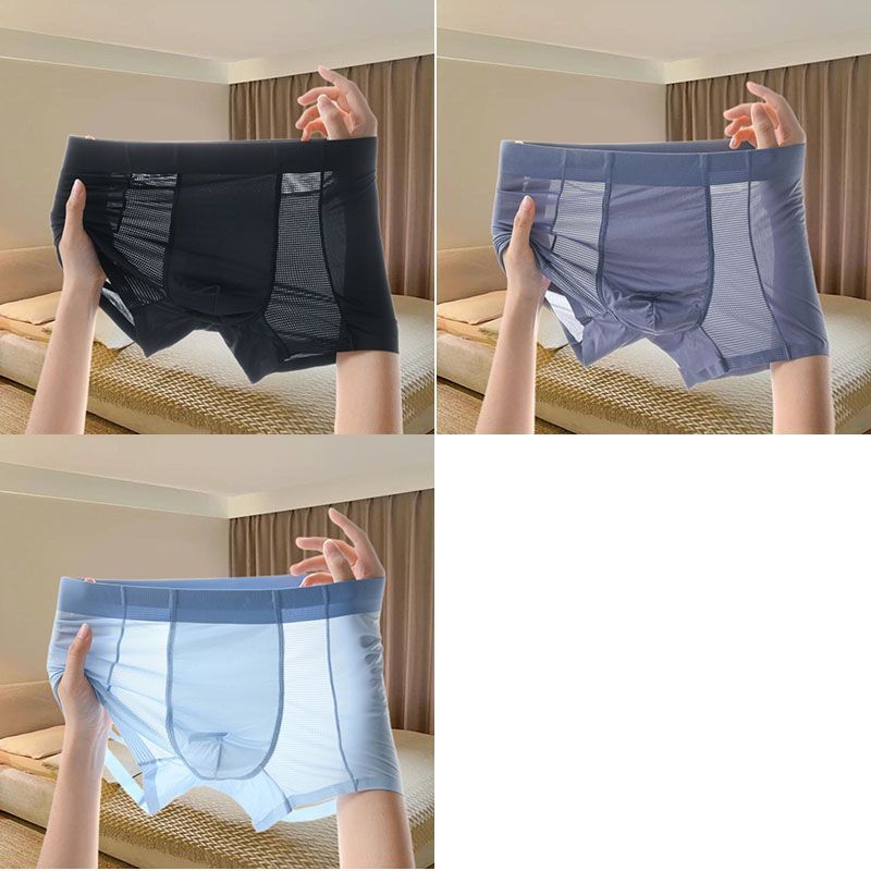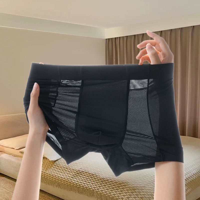 레이스 남성 속옷 아이스 실크 원활한 투명 복서 바지 2023 새로운 남성 섹시한 복서 여름 바지