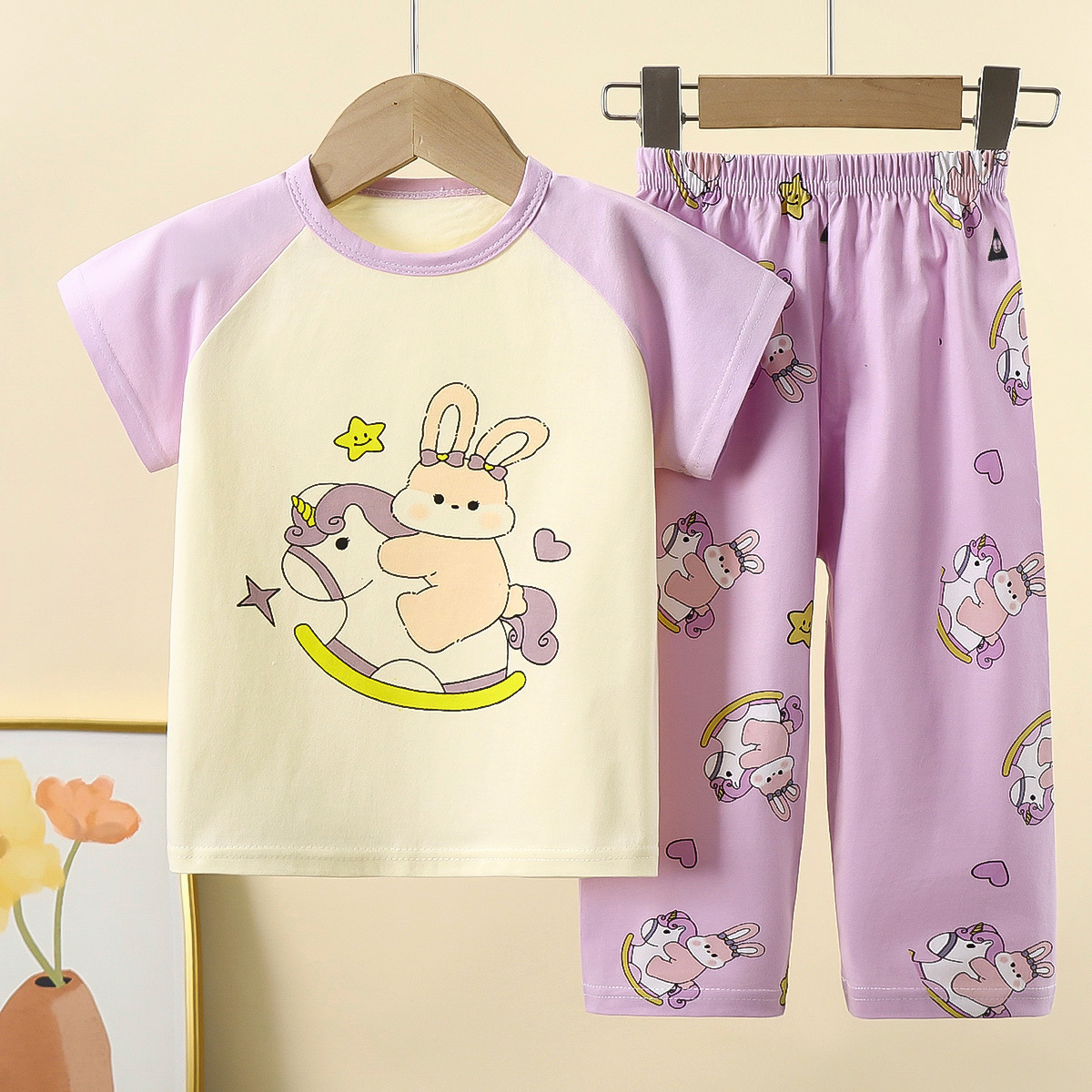 아동용 반팔 양복 순면 여름 아기 티셔츠 소년 가정복 소녀 잠옷 여름 옷 아동복