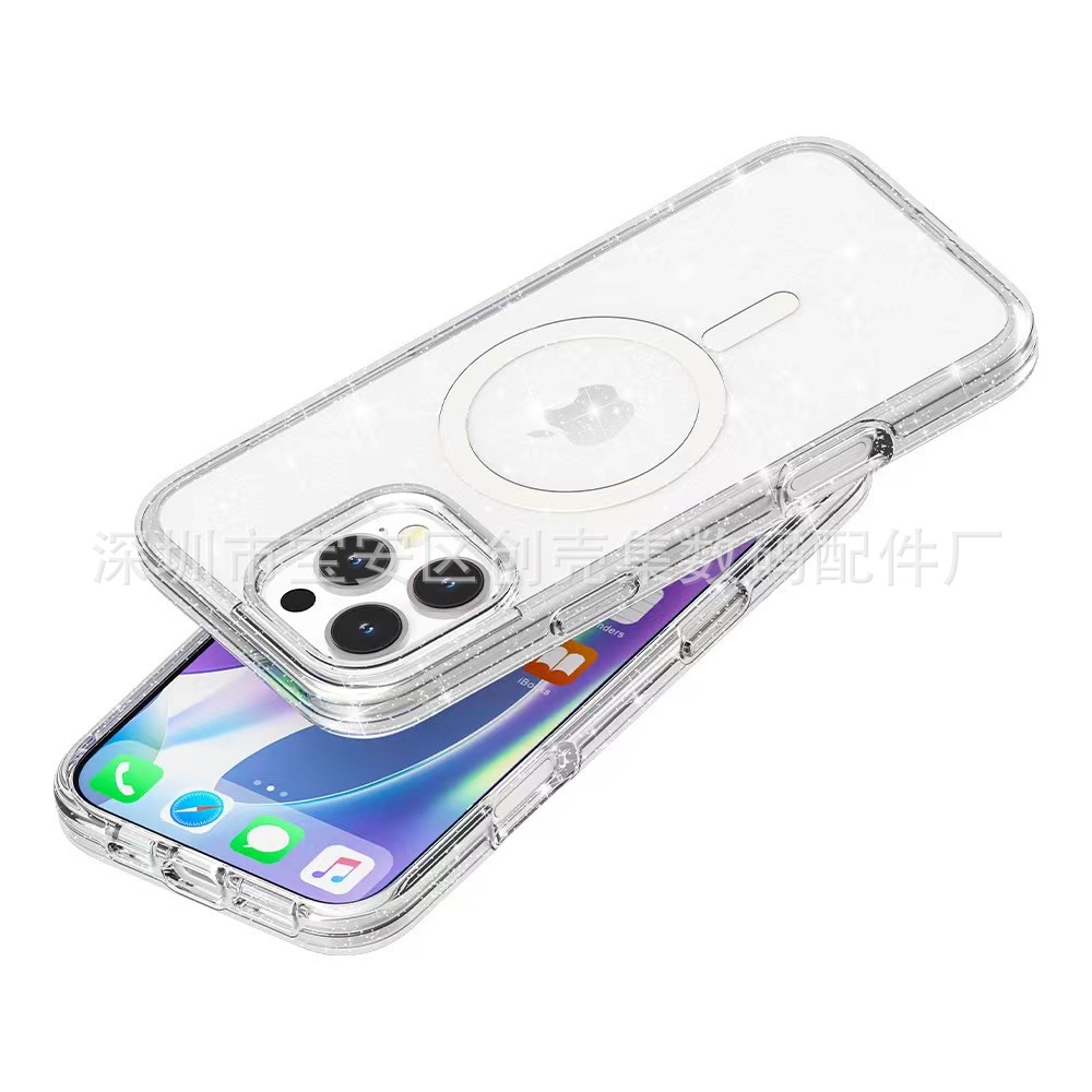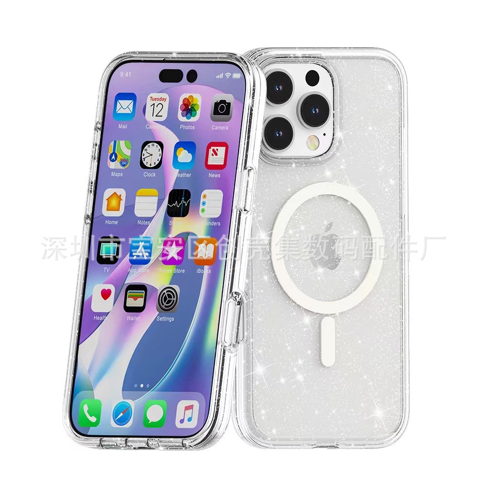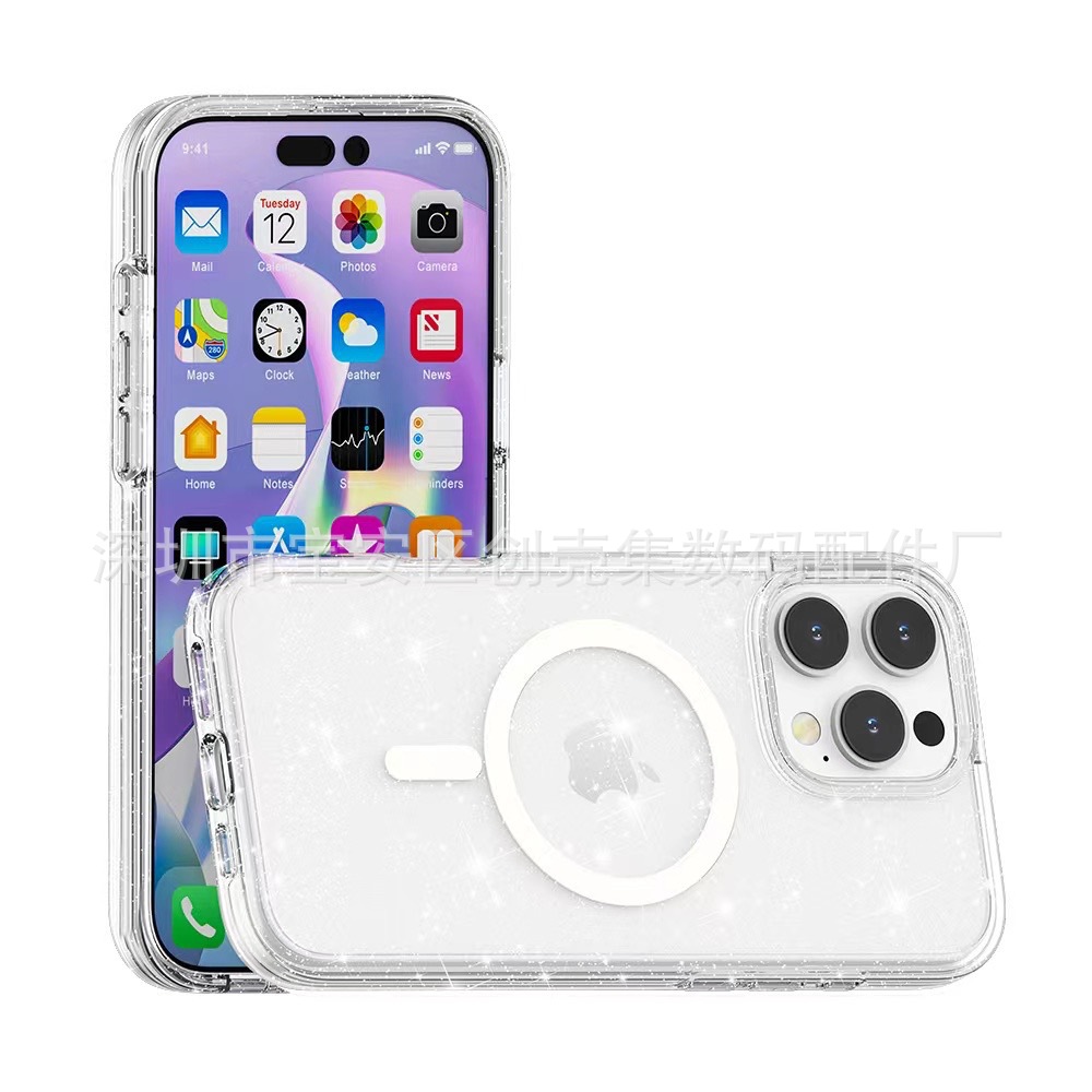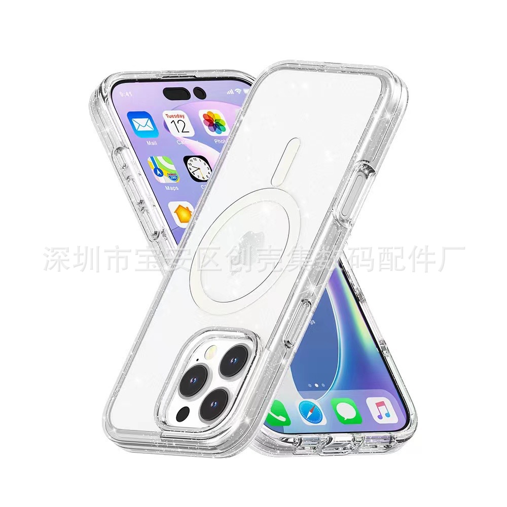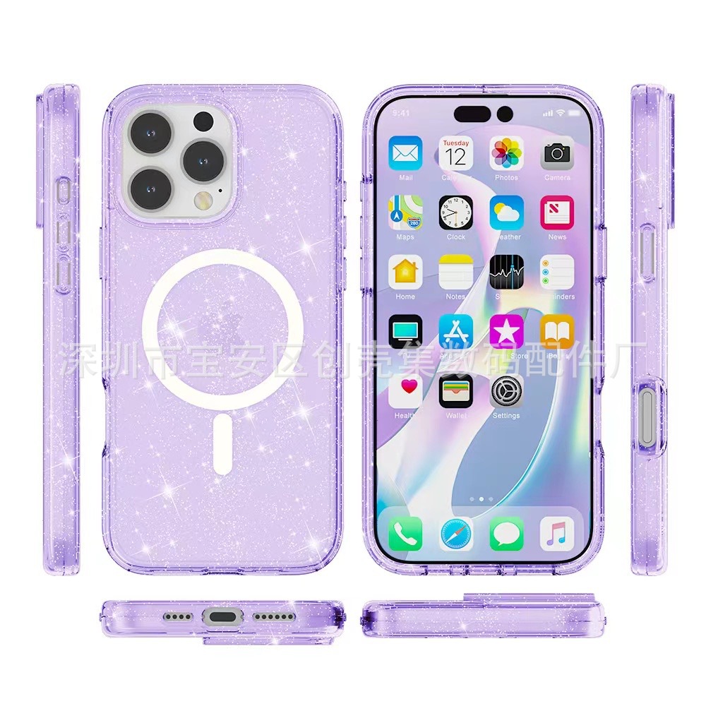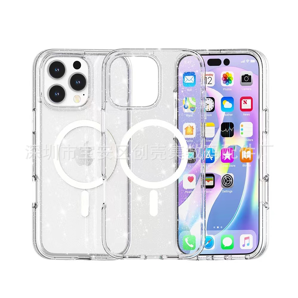 IPHONE 17 마그네틱 케이스에 적합, 모든 기능이 포함된 마그네틱 투명 글리터 보호 케이스, IP17MAX 마그네틱 보호 케이스스토어 가기