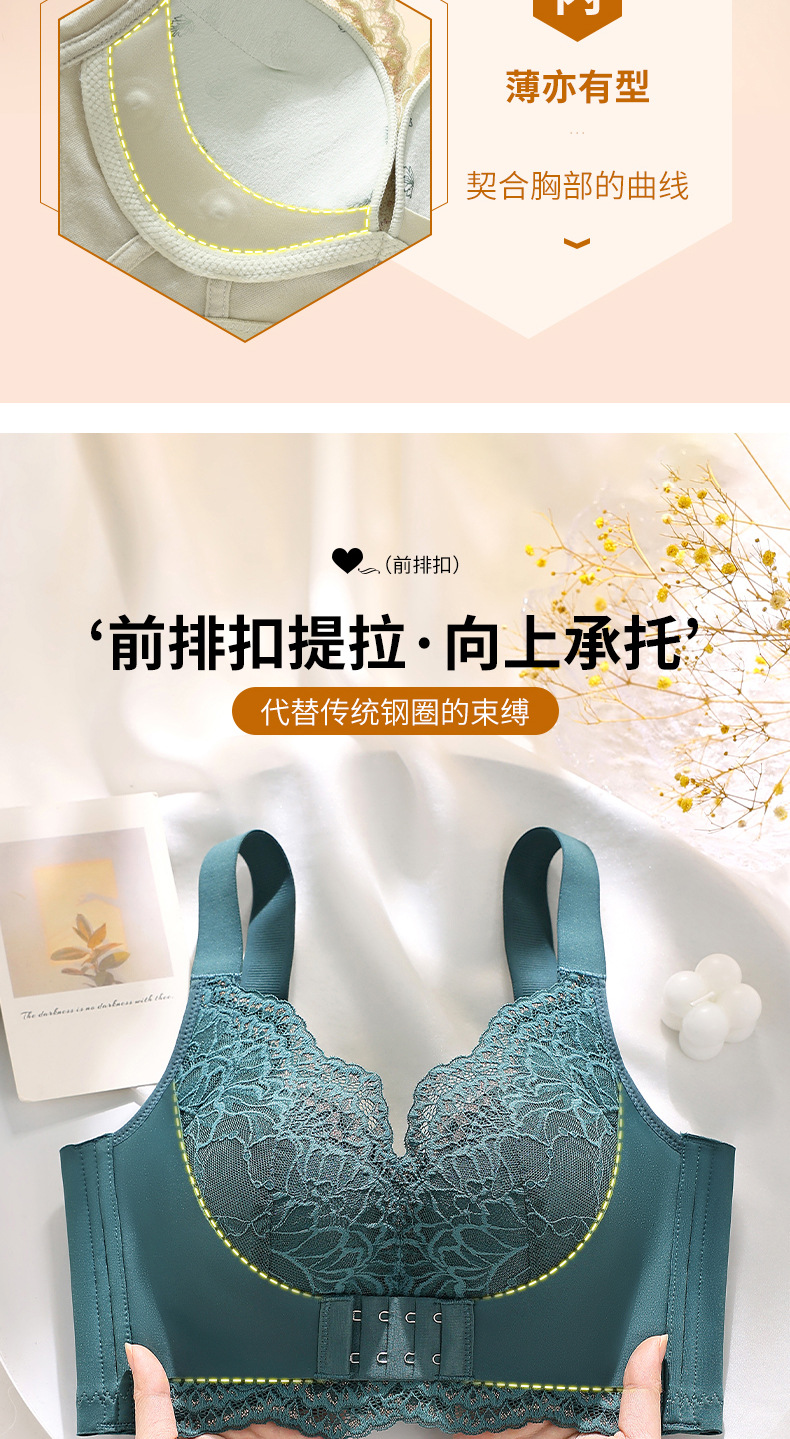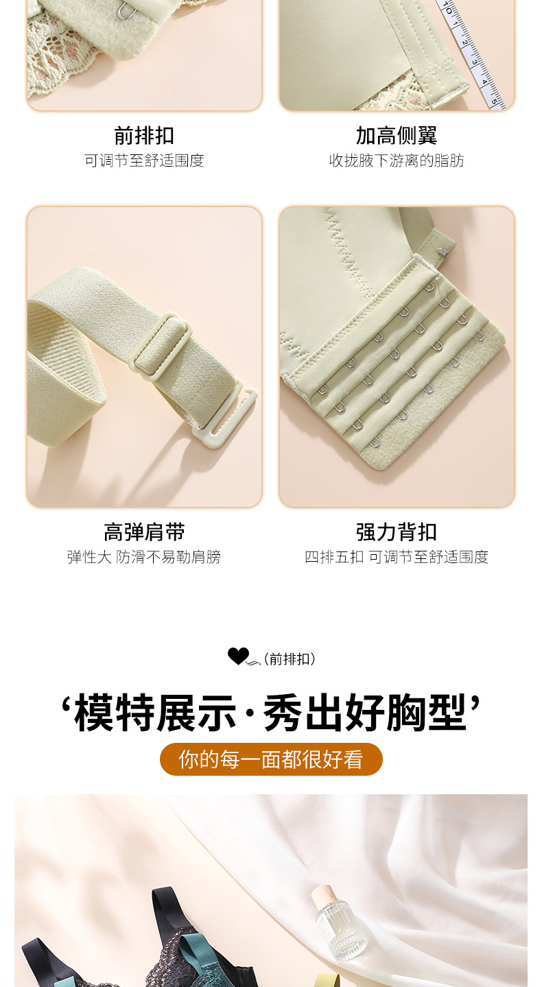 프론트 버클 레이스 속옷 여성용 푸시 업 작은 가슴 쇼 대형 어퍼 브래킷 비 스틸 반지 유방 처짐 방지 조정 가능한 브래지어스토어 가기