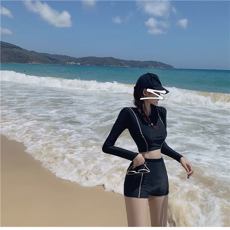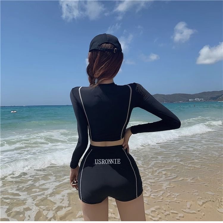 스포츠 스플릿 수영복 여성 프로 보수적 인 새로운 온천 수영복 긴 반팔 여성 성인 수영복 도매스토어 가기