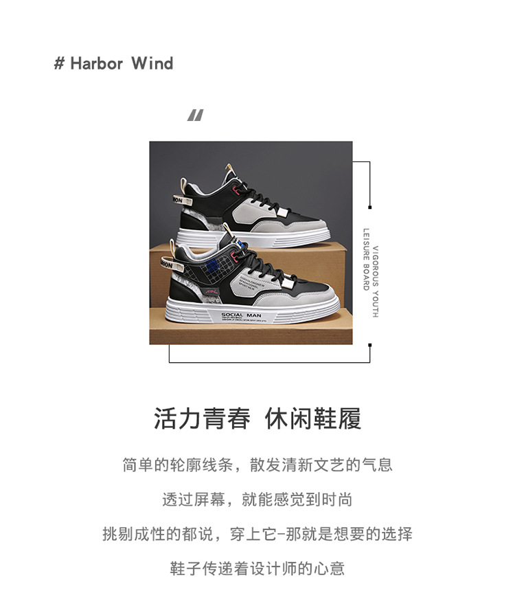 帆布高帮秋季男鞋2024新款增高夏季布鞋运动休闲小白板鞋百搭潮鞋