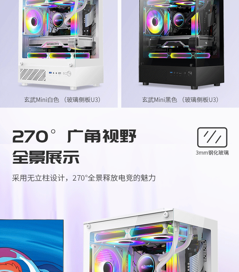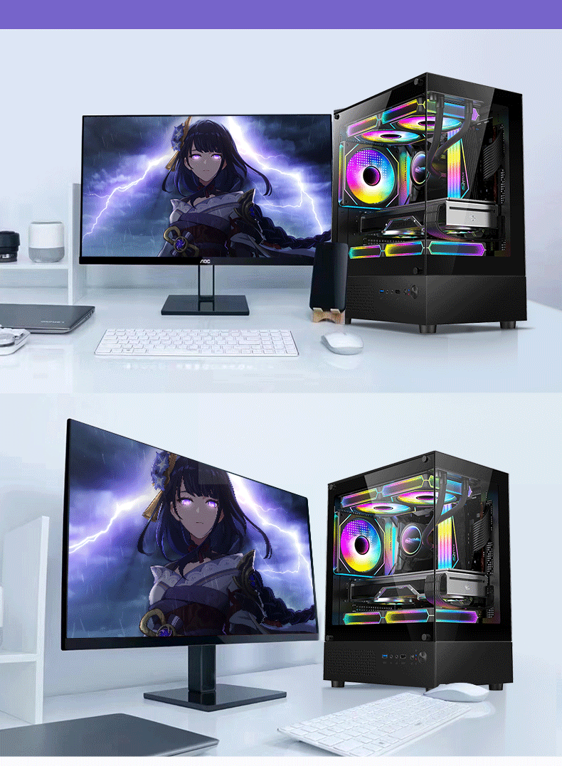 아마존 Xuanwu 미니 데스크톱 컴퓨터 데스크탑 수냉식 섀시 바다 전망 룸 유리 게임 전체 투명 섀시스토어 가기