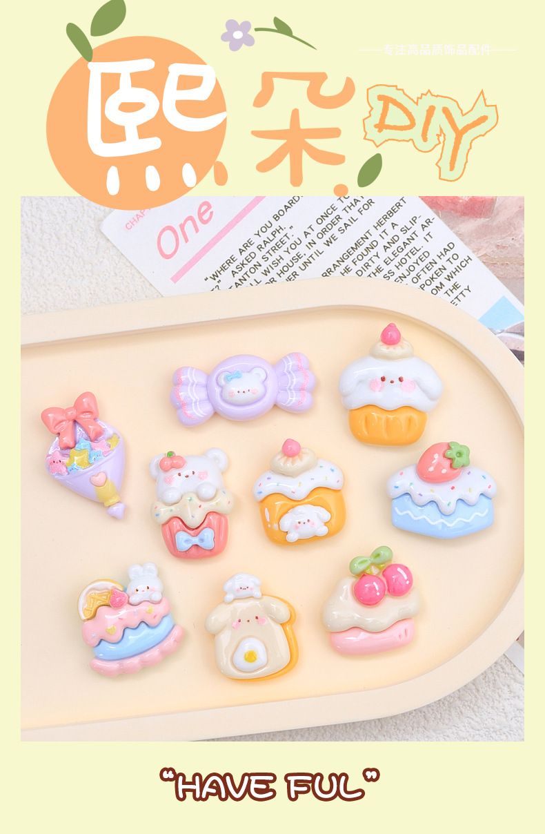 귀여운 개 디저트 하우스 만화 크림 접착제 액세서리 구멍 신발 버클 소재 수지 액세서리 DIY 쥬얼리 헤어핀스토어 가기