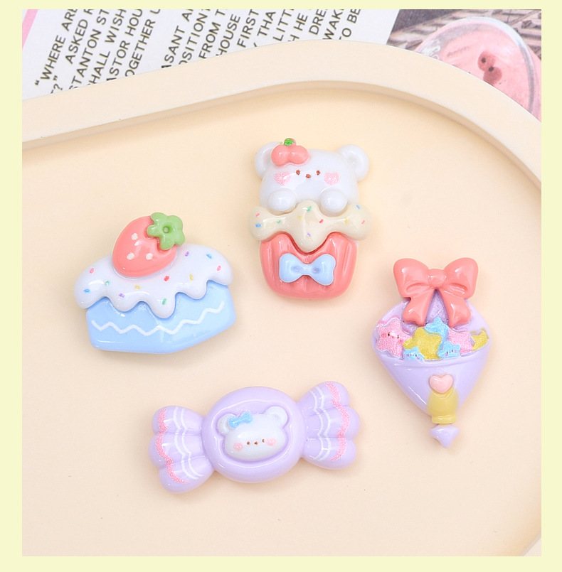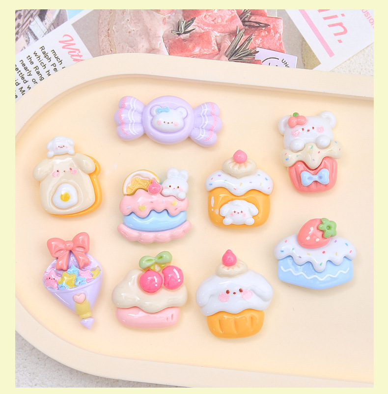 귀여운 개 디저트 하우스 만화 크림 접착제 액세서리 구멍 신발 버클 소재 수지 액세서리 DIY 쥬얼리 헤어핀
