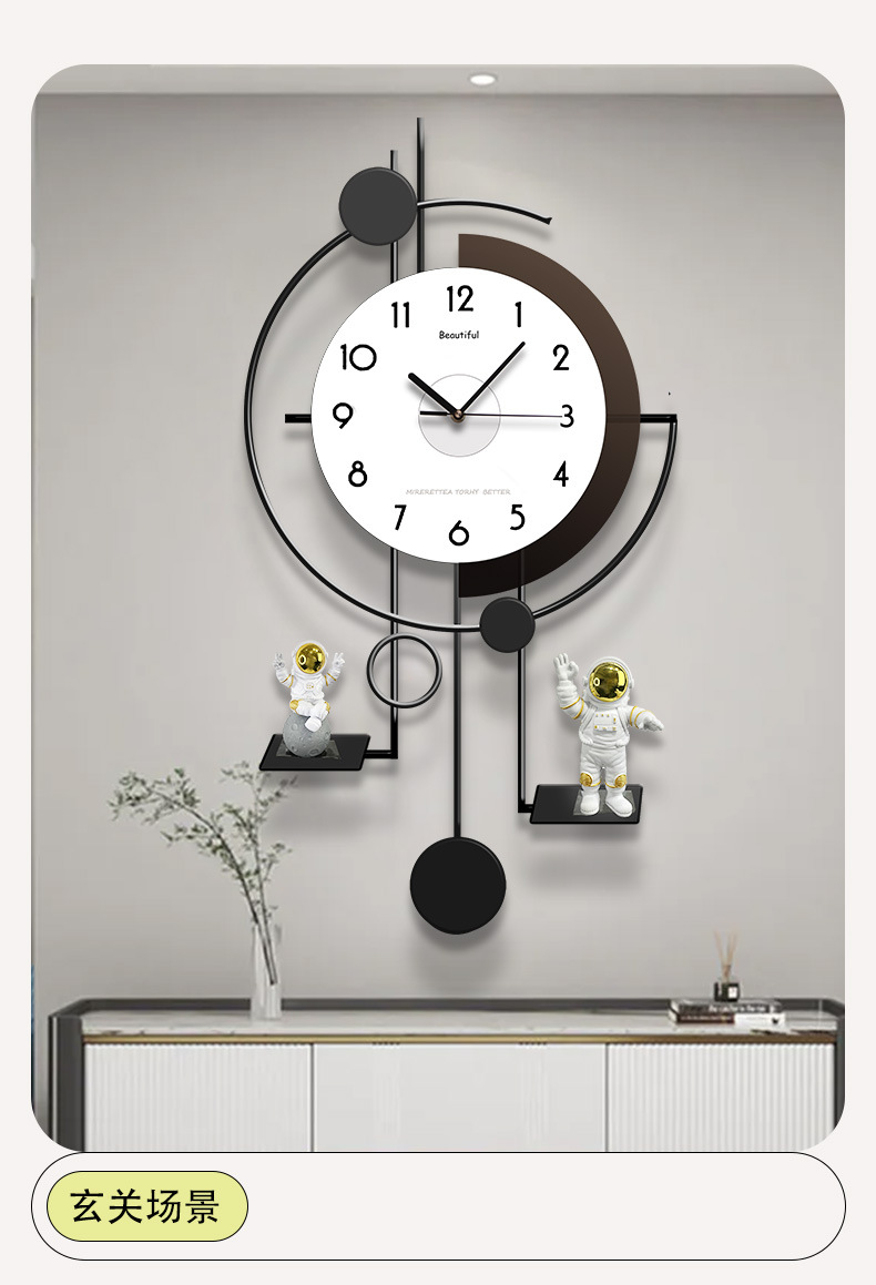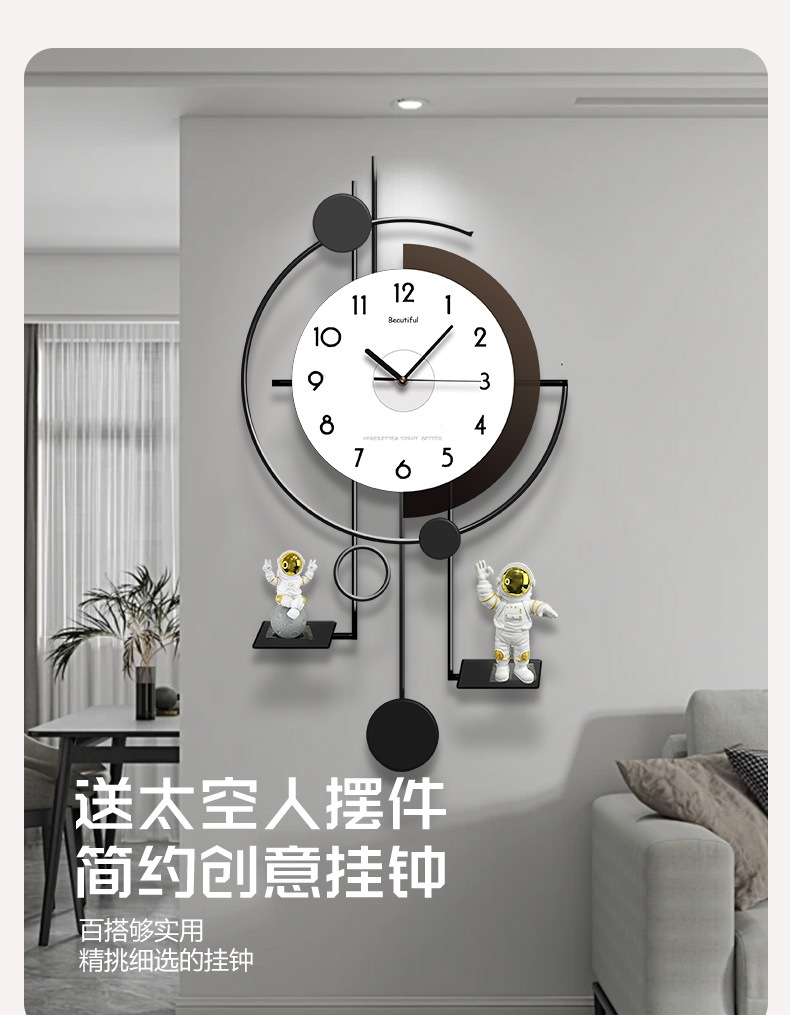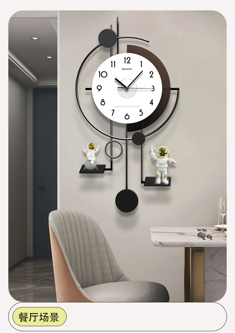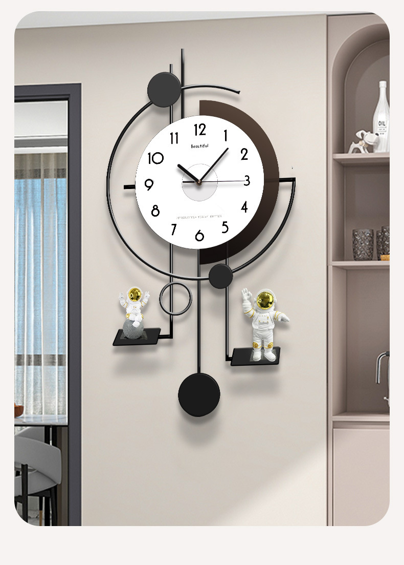 현대적인 창의적인 우주 비행사 거실 벽시계, 새로운 심플한 북유럽 스타일의 가정용 무타공 장식품, 우아한 벽걸이 시계