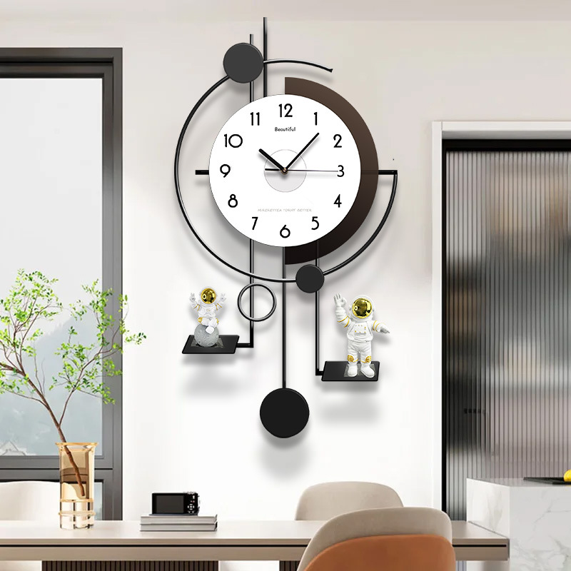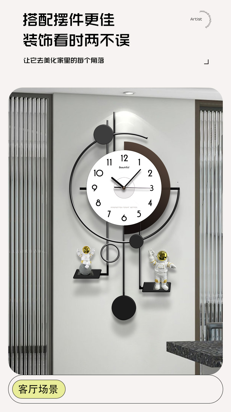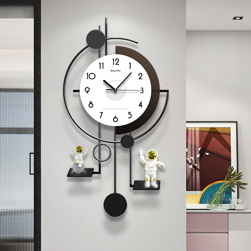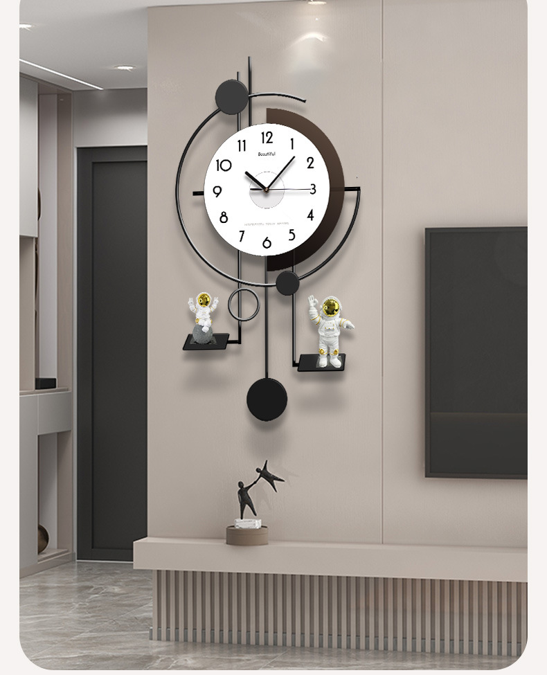 현대적인 창의적인 우주 비행사 거실 벽시계, 새로운 심플한 북유럽 스타일의 가정용 무타공 장식품, 우아한 벽걸이 시계
