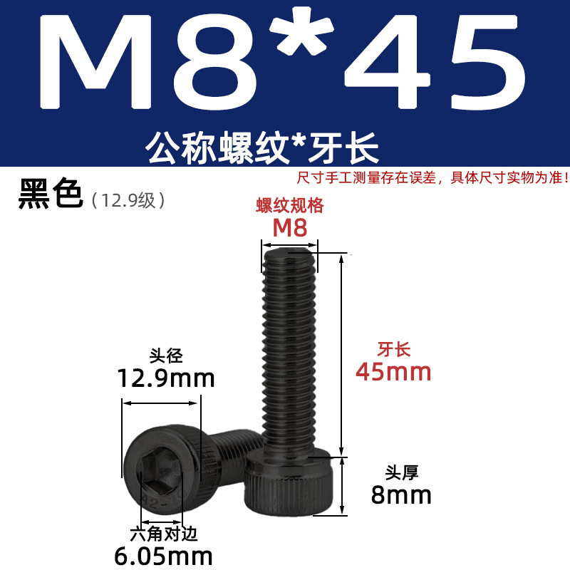 • 육각 소켓 볼트 M8*45 검정색(레벨 12.9)