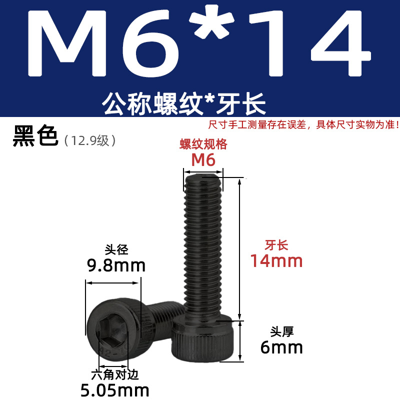 • 육각 소켓 볼트 M6*14 검정색(레벨 12.9)