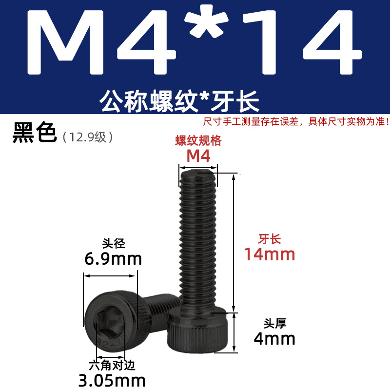 • 육각 소켓 볼트 M4*14 검정색(레벨 12.9)