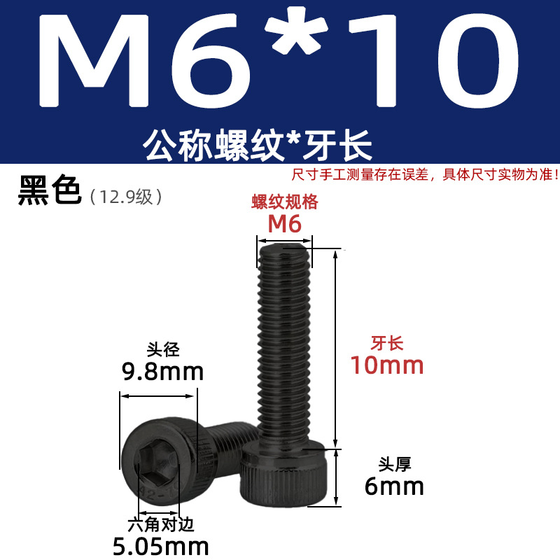 • 육각 소켓 볼트 M6*10 검정색(레벨 12.9)
