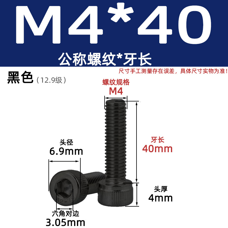 • 육각 소켓 볼트 M4*40 검정색(레벨 12.9)