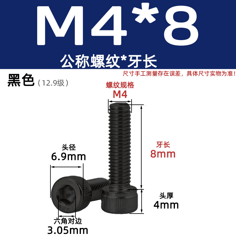 • 육각 소켓 볼트 M4*8 검정색(레벨 12.9)