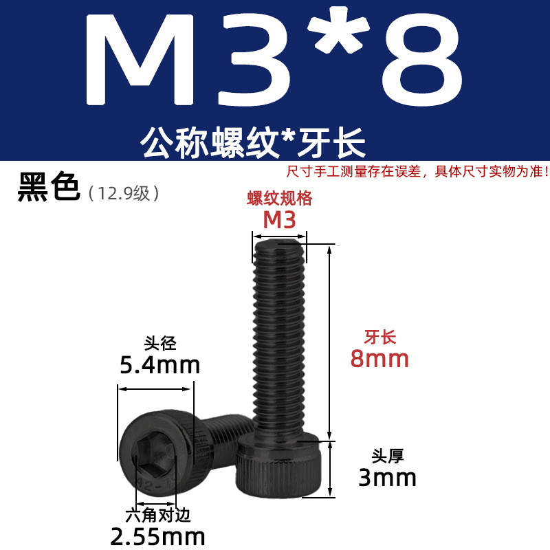 • 육각 소켓 볼트 M3*8 검정색(레벨 12.9)