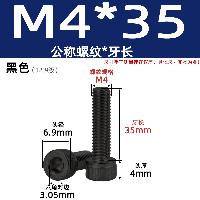 • 육각 소켓 볼트 M4*35 검정색(레벨 12.9)
