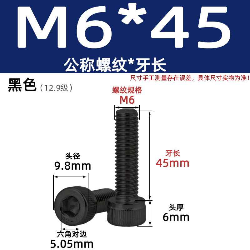 • 육각 소켓 볼트 M6*45 검정색(레벨 12.9)