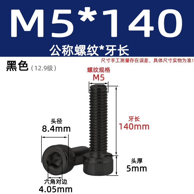 • 육각 소켓 볼트 M5*140 검정색(레벨 12.9)