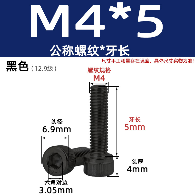 • 육각 소켓 볼트 M4*5 검정색(레벨 12.9)