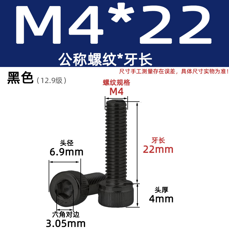 • 육각 소켓 볼트 M4*22 검정색(레벨 12.9)