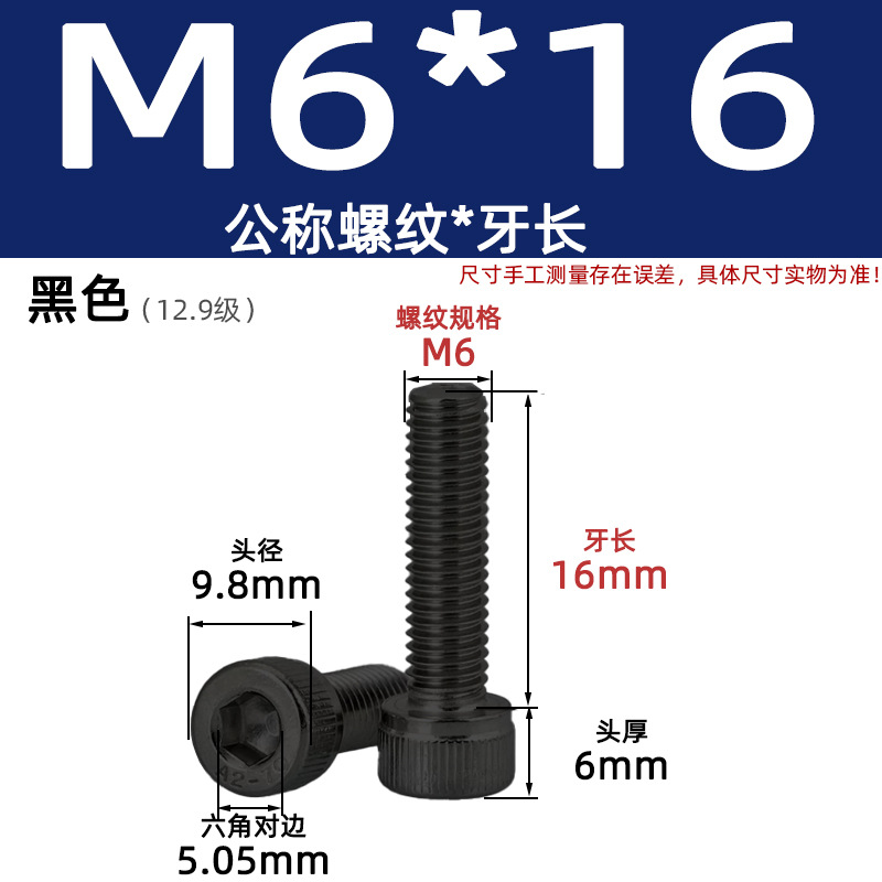 • 육각 소켓 볼트 M6*16 검정색(레벨 12.9)