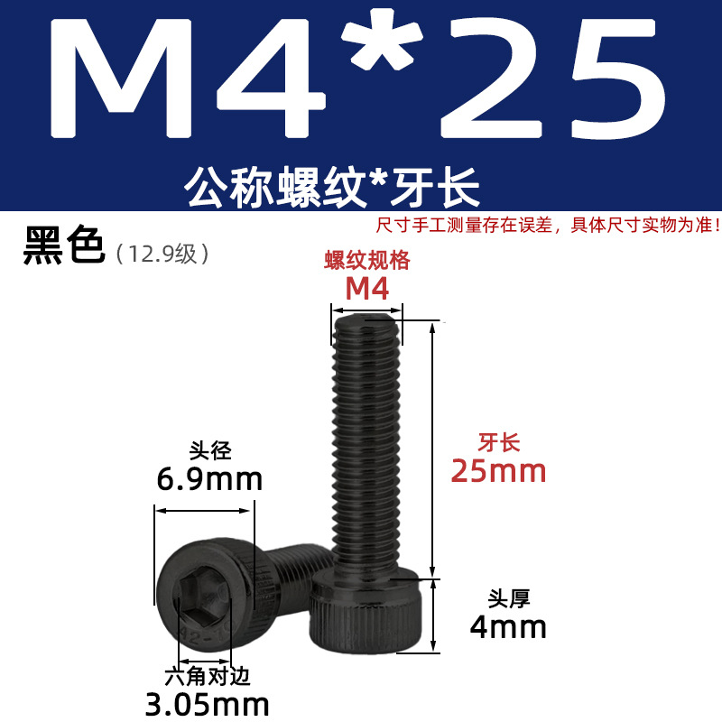 • 육각 소켓 볼트 M4*25 검정색(레벨 12.9)
