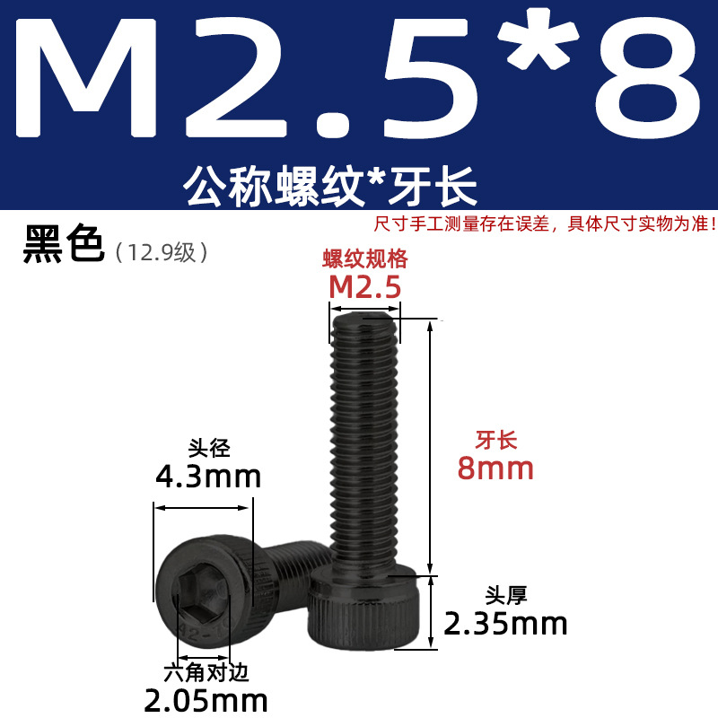 • 육각 소켓 볼트 M2.5*8 검정색(레벨 12.9)