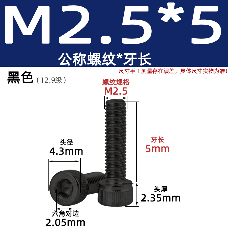 • 육각 소켓 볼트 M2.5*12 검정색(레벨 12.9)