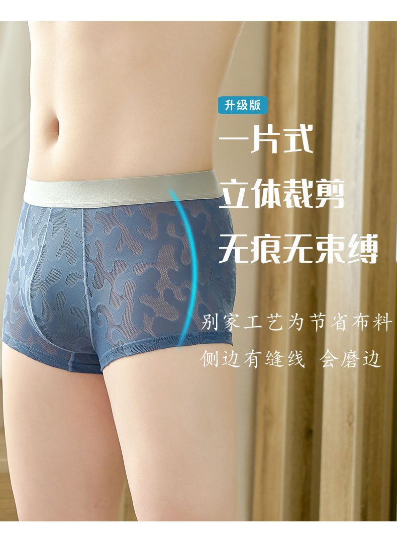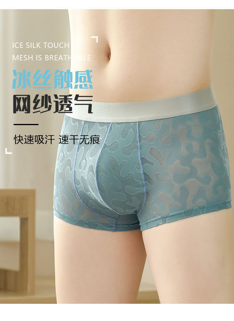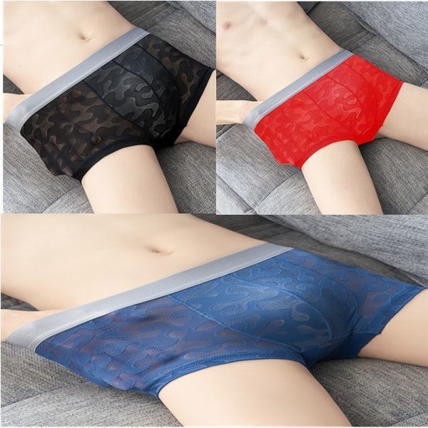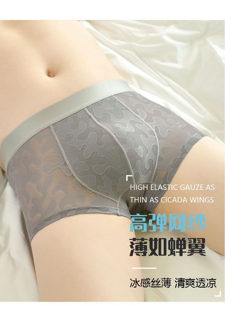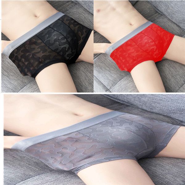 남성용 속옷 남성용 레이스 원단 아이스 실크 투명 박스 독특한 추적없는 남성용 속옷 메쉬 바지 얇은 여름스토어 가기