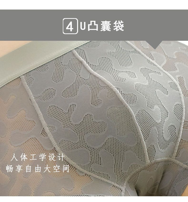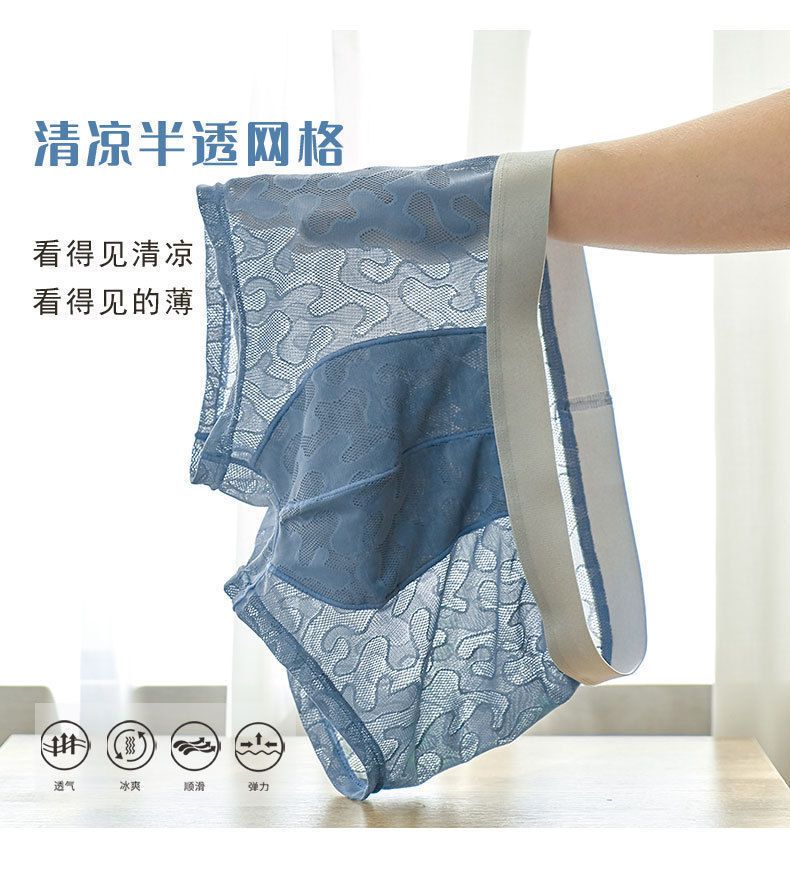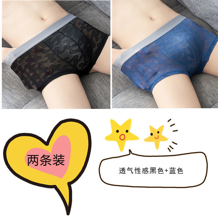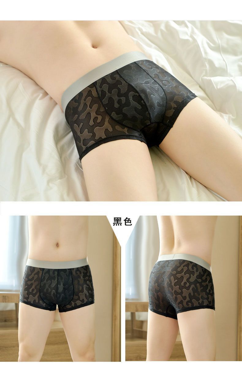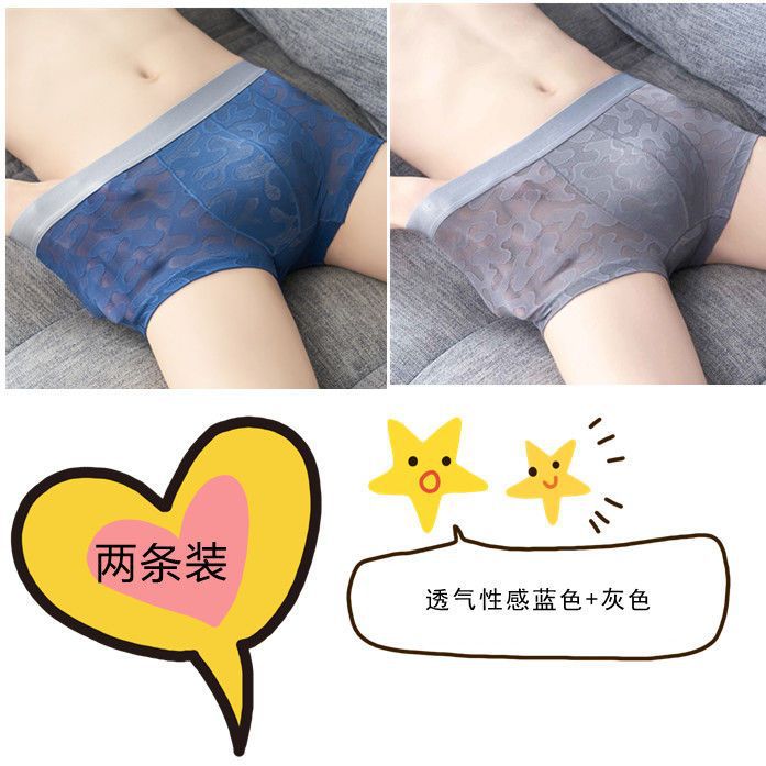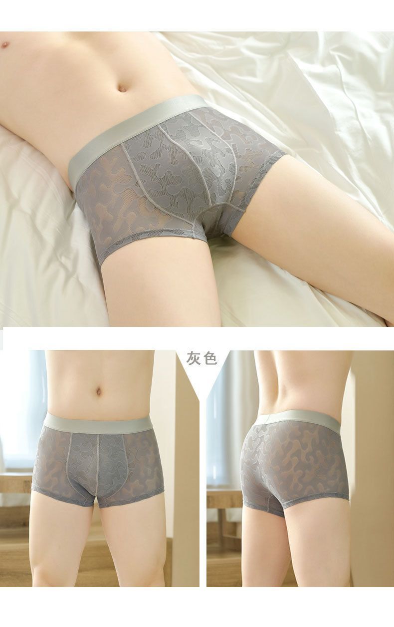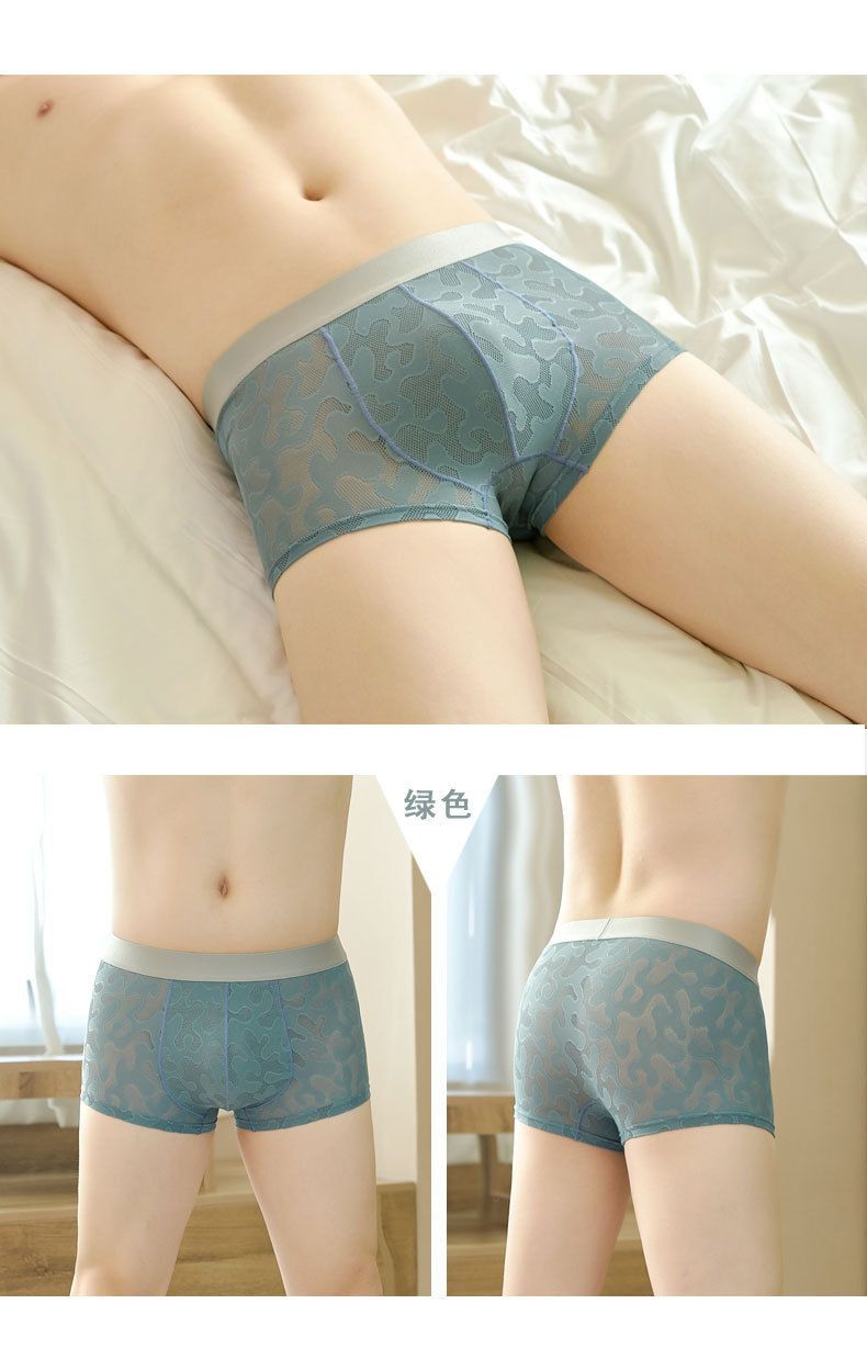 남성용 속옷 남성용 레이스 원단 아이스 실크 투명 박스 독특한 추적없는 남성용 속옷 메쉬 바지 얇은 여름
