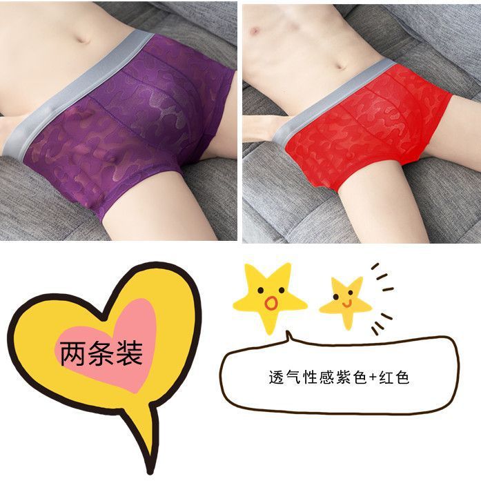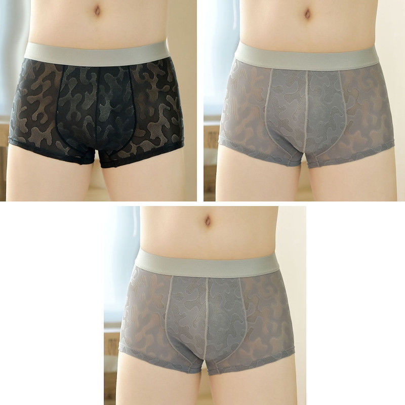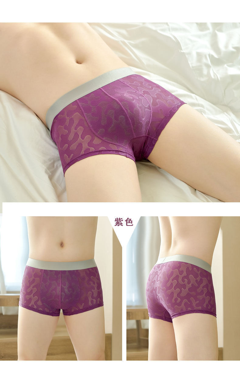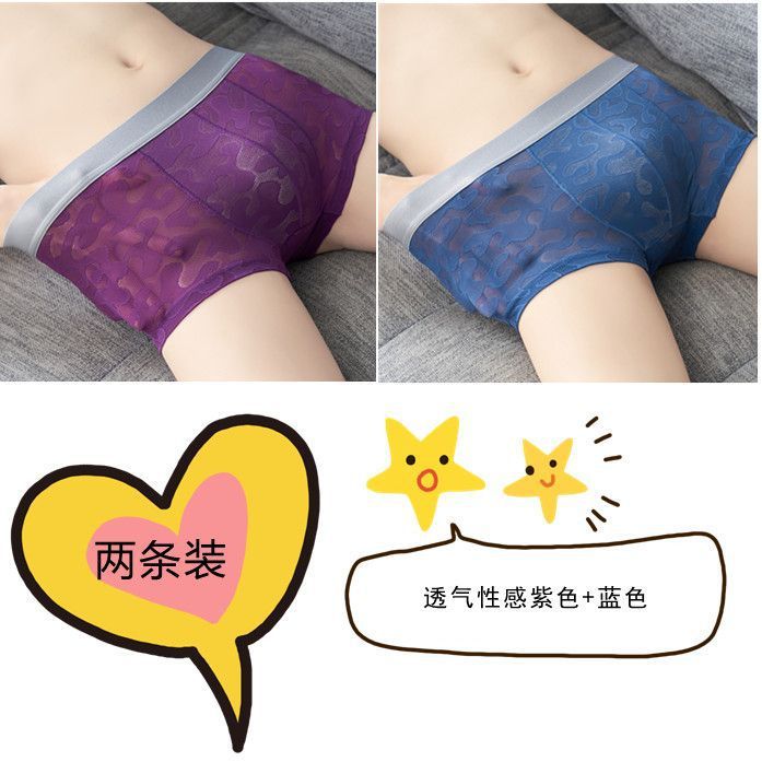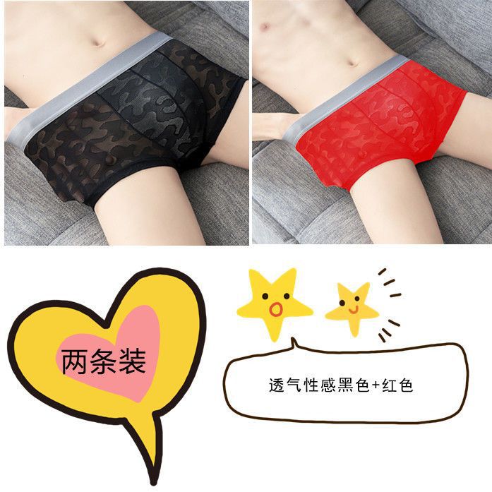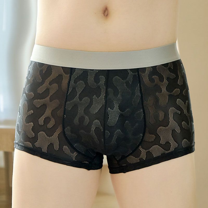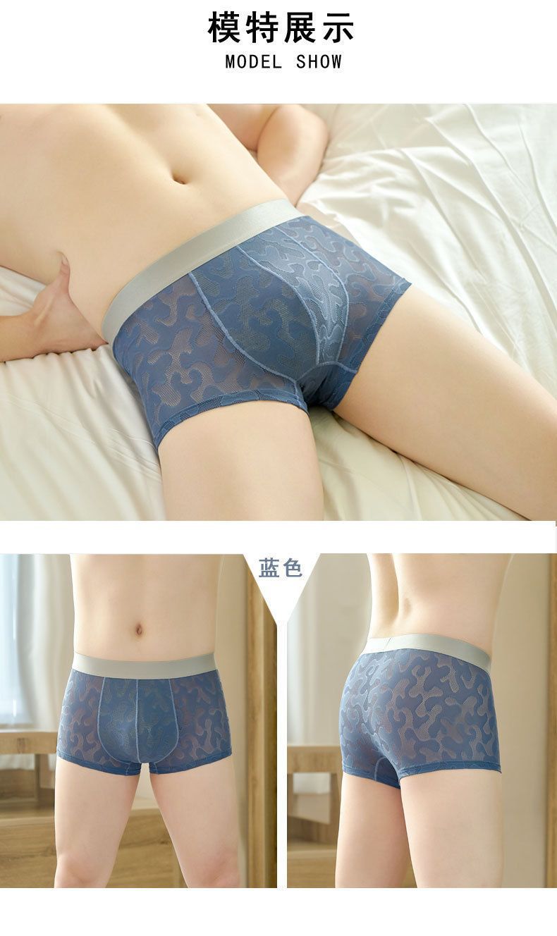 남성용 속옷 남성용 레이스 원단 아이스 실크 투명 박스 독특한 추적없는 남성용 속옷 메쉬 바지 얇은 여름