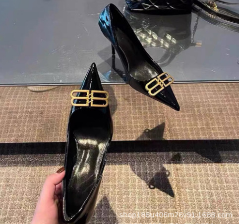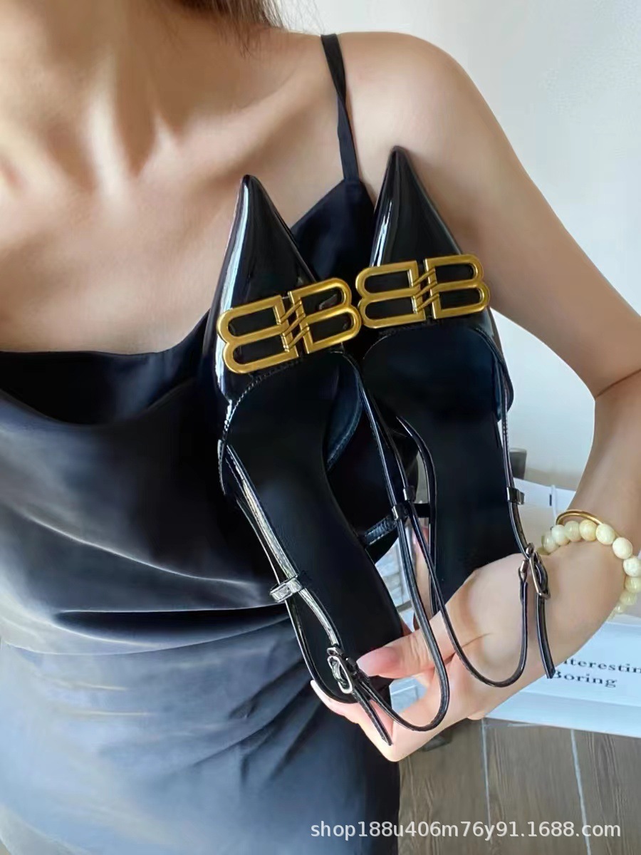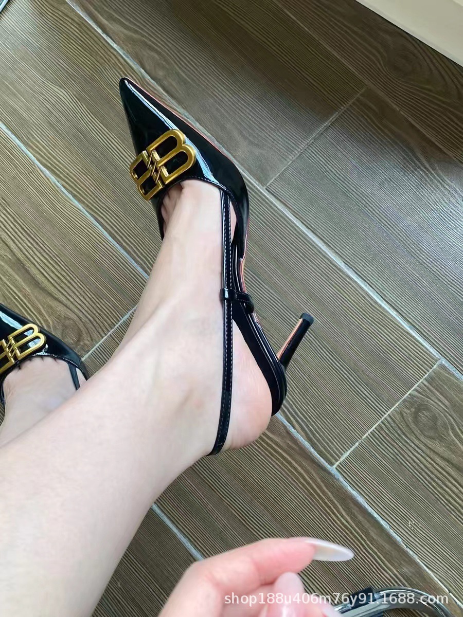 [재고] 흑색 특허 가죽 숙녀 기질 스틸레토 힐 여름 뾰족한 하이힐 여성용 여성용 프렌치 샌들스토어 가기