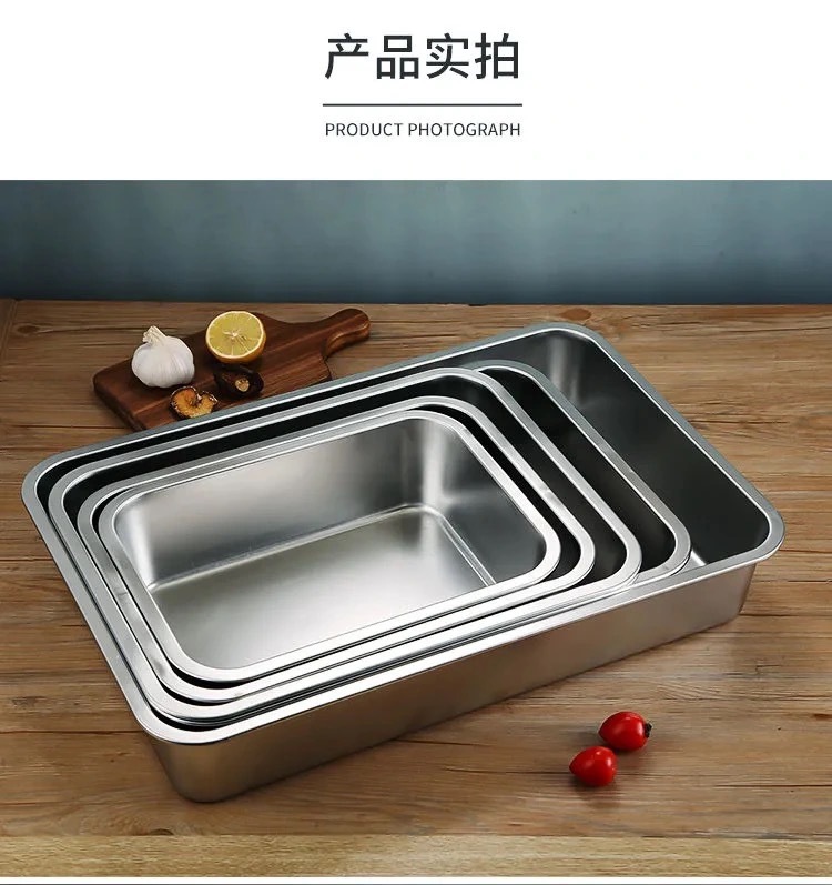 스테인레스 스틸 사각 접시 직사각형 트레이 상업용 흰색 강철 서빙 트레이 상업용 깊은 구운 생선 철 접시 뚜껑이있는 사각형 냄비스토어 가기
