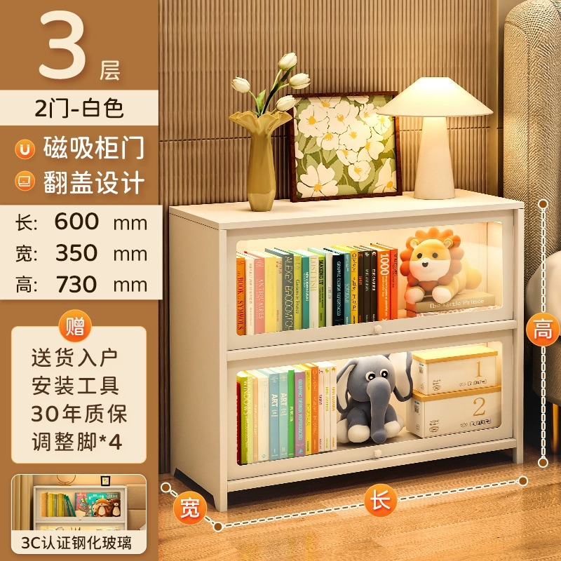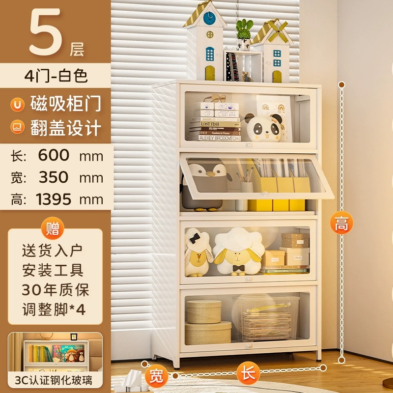 크림 스타일 책장 어린이 방진 책장 다층 바닥 보관 캐비닛 가정용 스틸 책장 유리 도어 사물함스토어 가기
