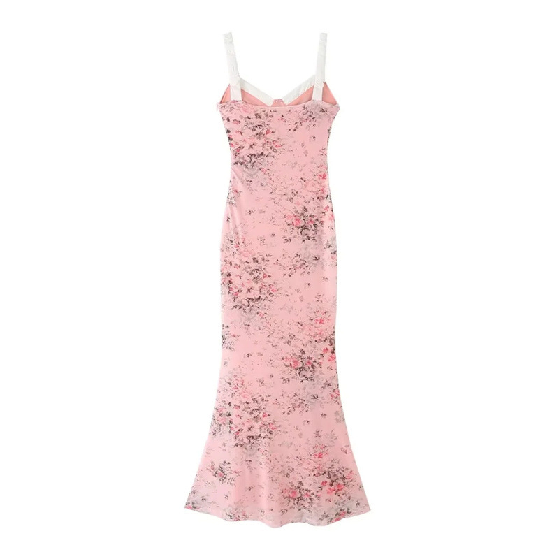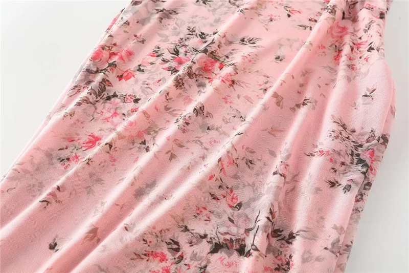 프랑스 꽃 슬립 원피스 피쉬 원피스 2024 순수 스파이스 소녀 슬림 핏 V-넥 메쉬 섹시한 엉덩이 원피스
