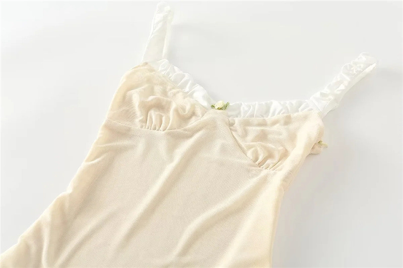 프랑스 꽃 슬립 원피스 피쉬 원피스 2024 순수 스파이스 소녀 슬림 핏 V-넥 메쉬 섹시한 엉덩이 원피스스토어 가기