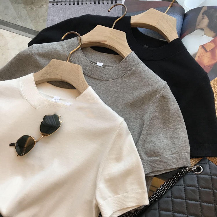 G性价比推荐!高品质单品~极简风超细棉小圆领针织短袖T恤女春夏