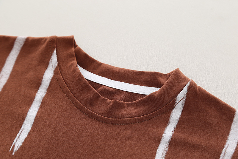 • 커피-YH 편지 수직 스트립 짧은 소매