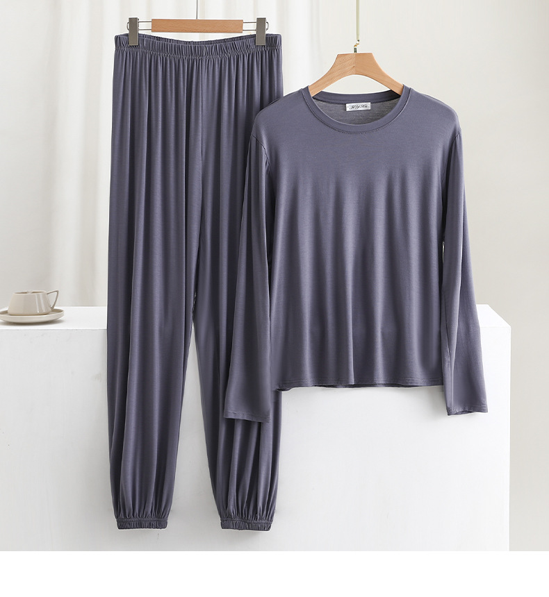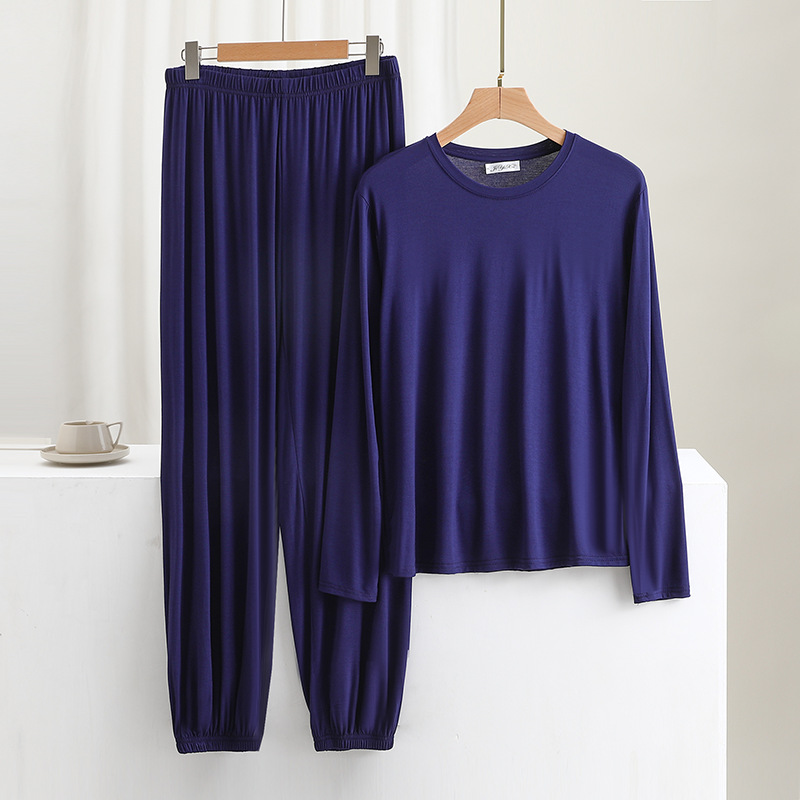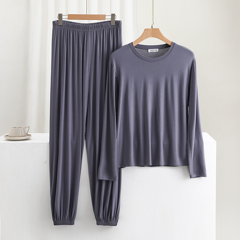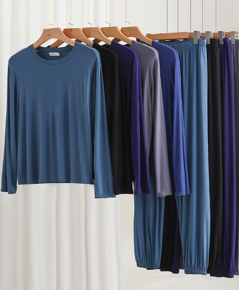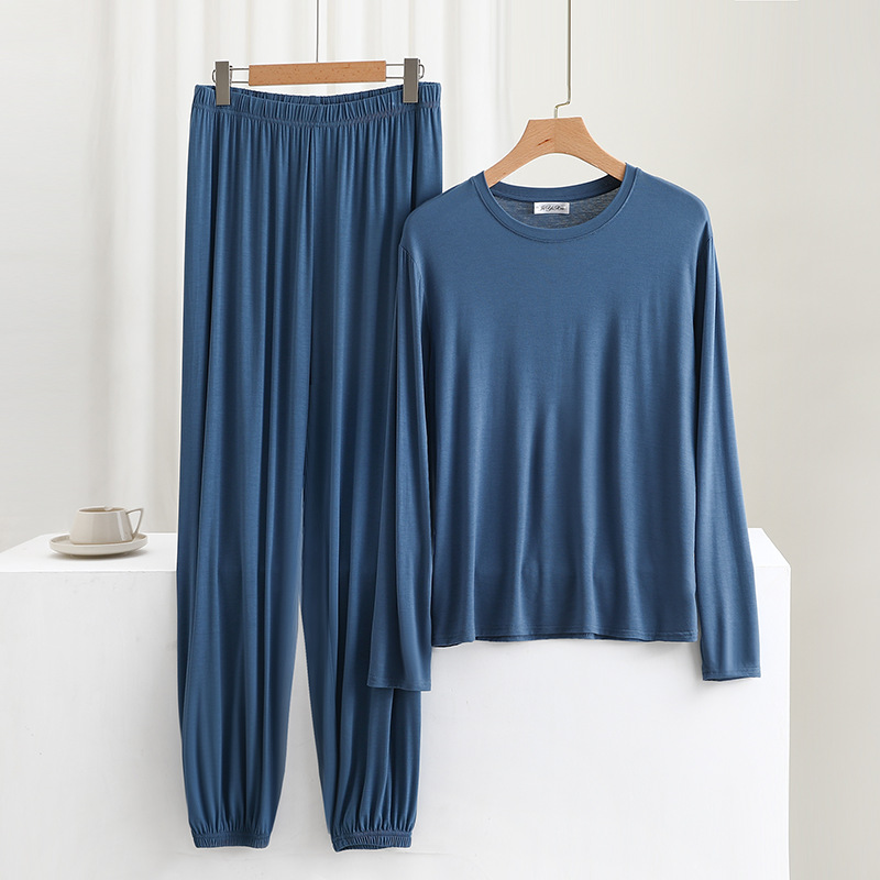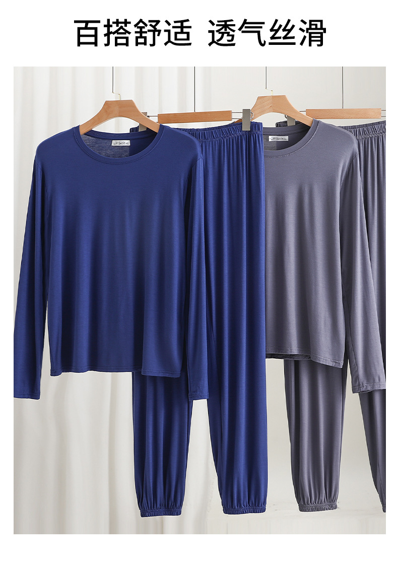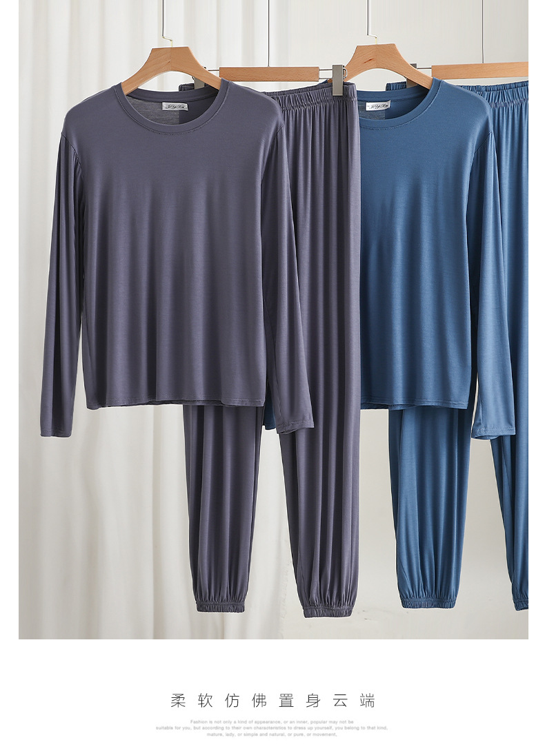 莫代尔宽松男士长袖长裤休闲家居服春夏薄款可外穿睡衣睡裤两件套